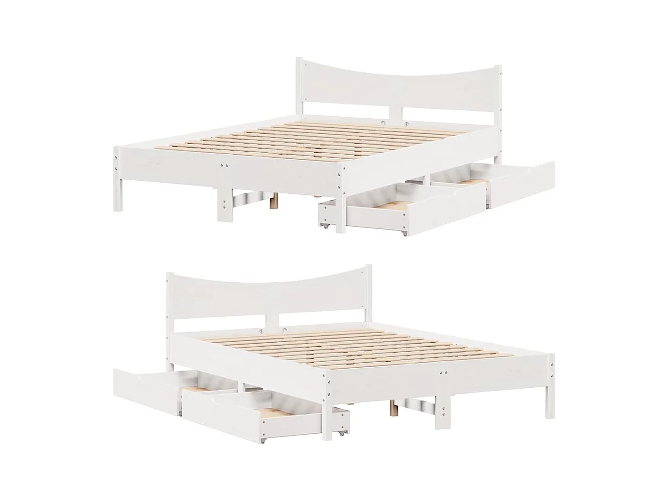 Massivholzbett mit Schubladen Weiß 150x200 cm Kiefer