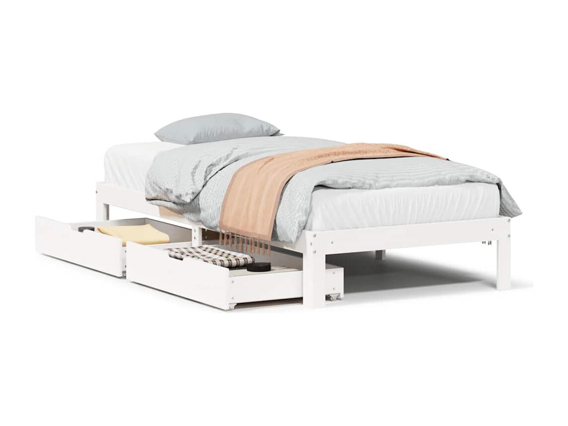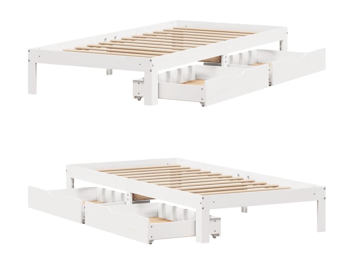 Massivholzbett mit Schubladen Weiß 90x200 cm Kiefer