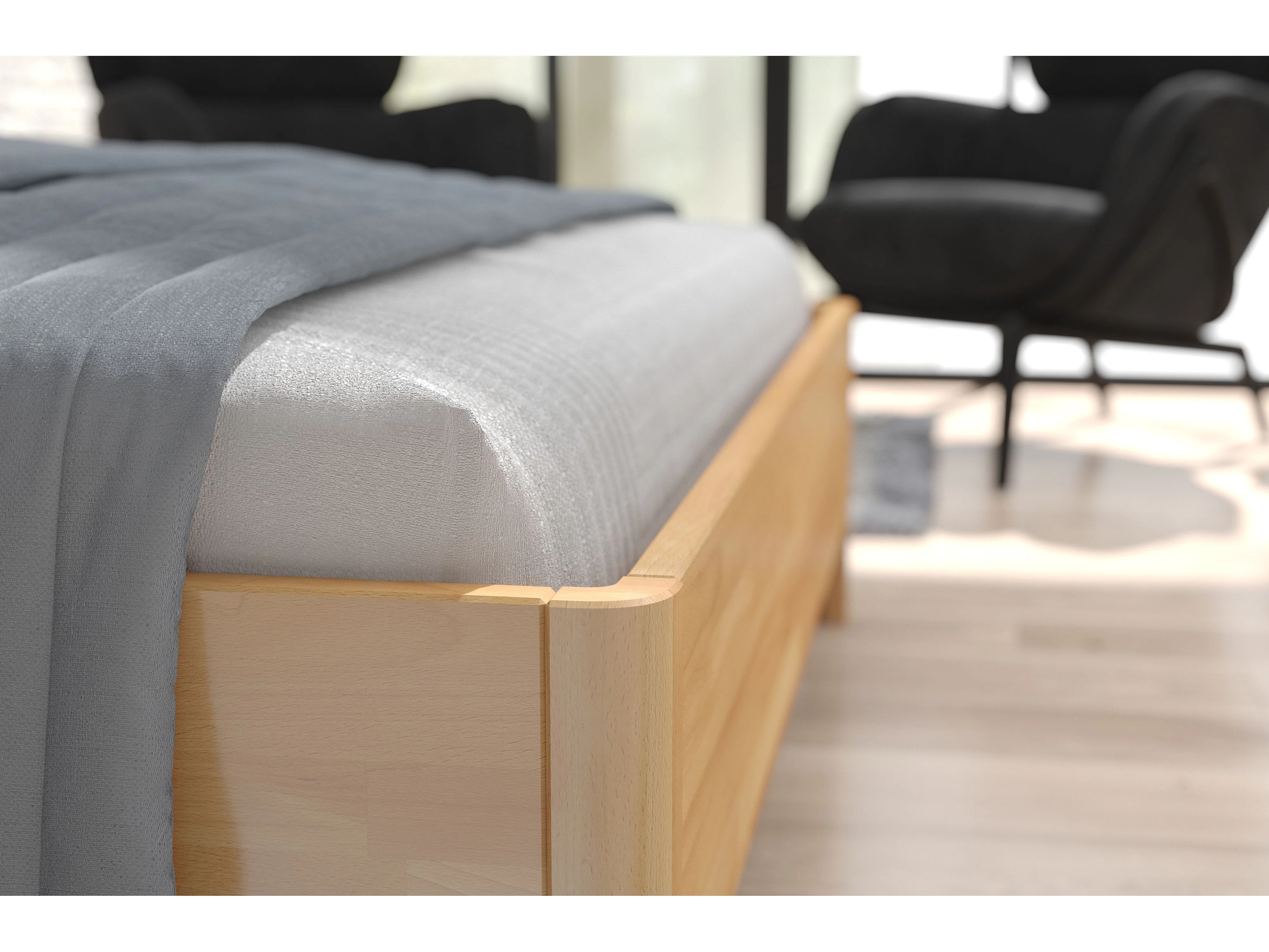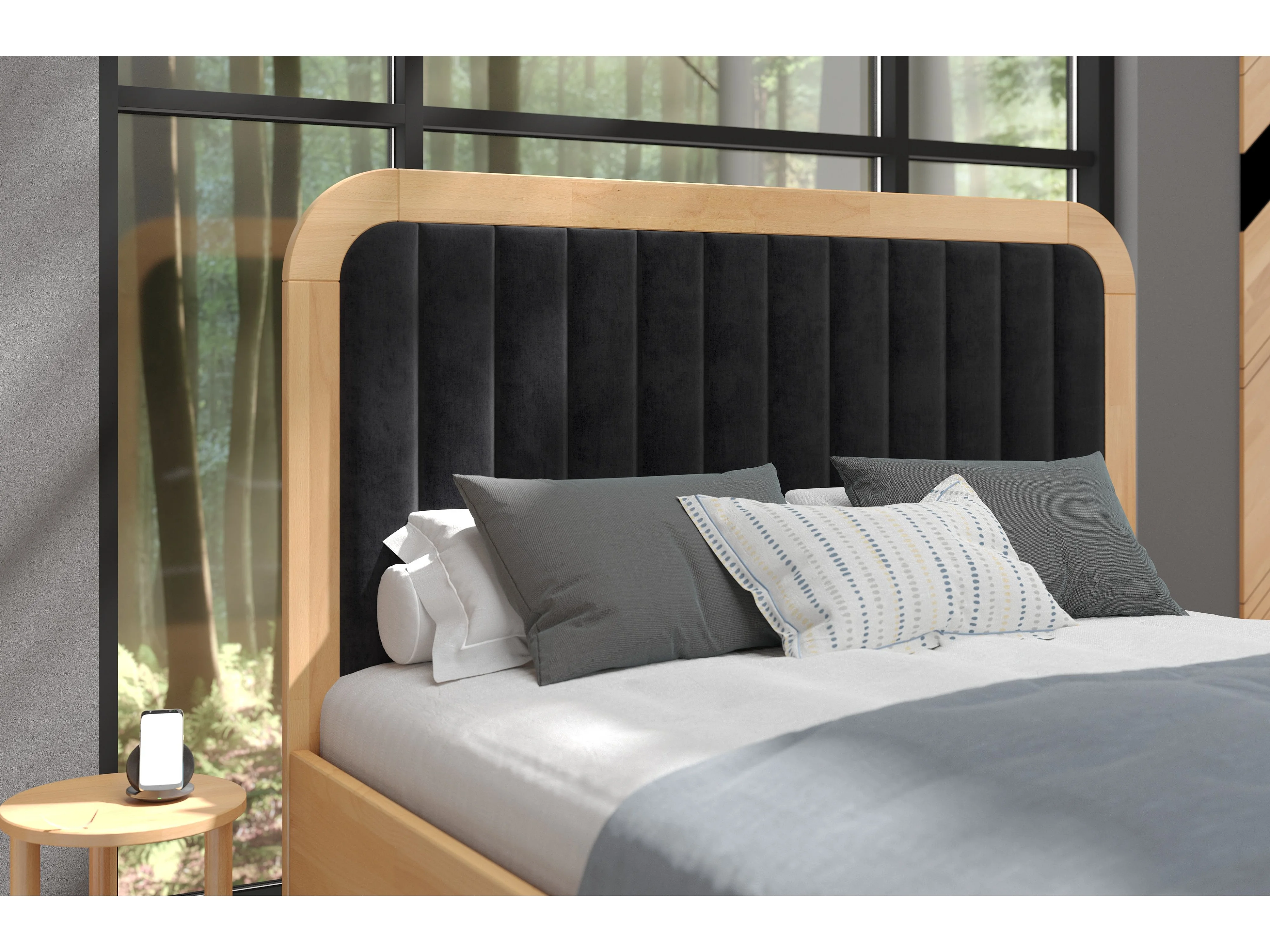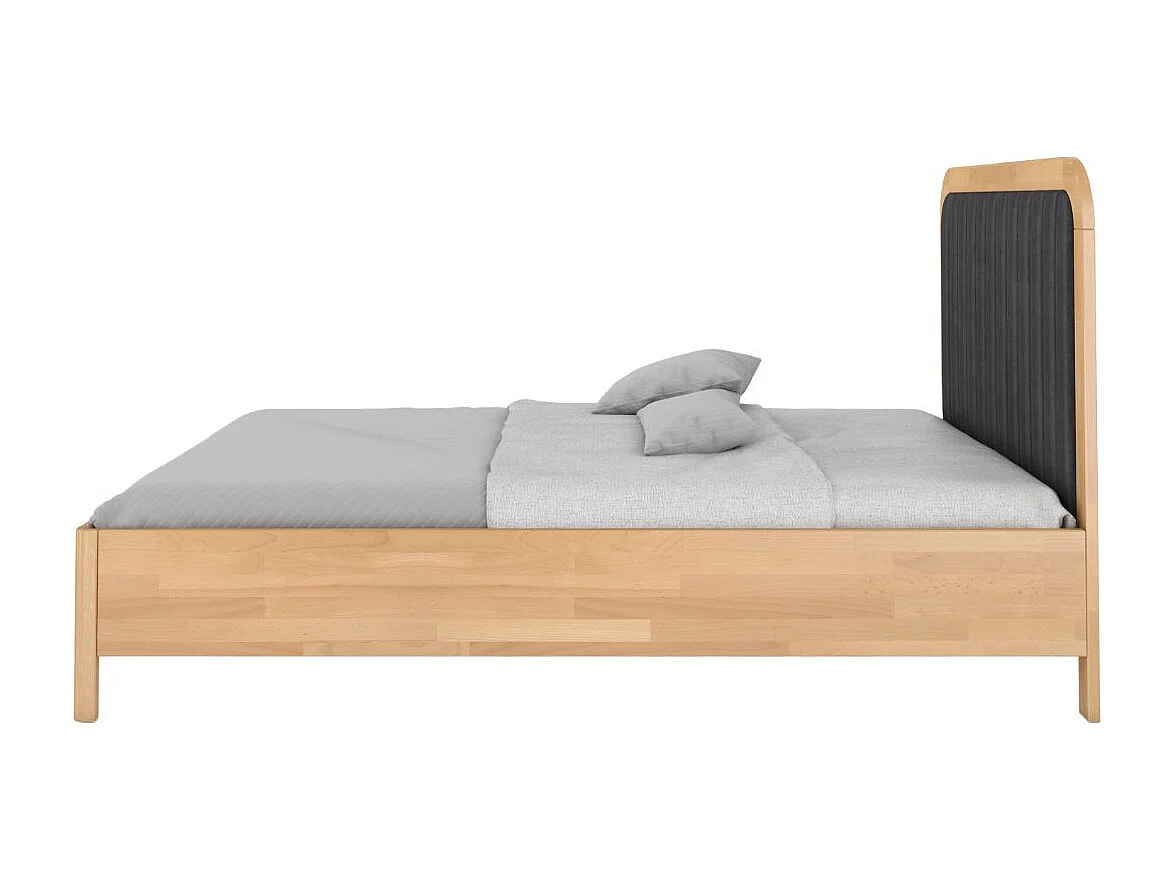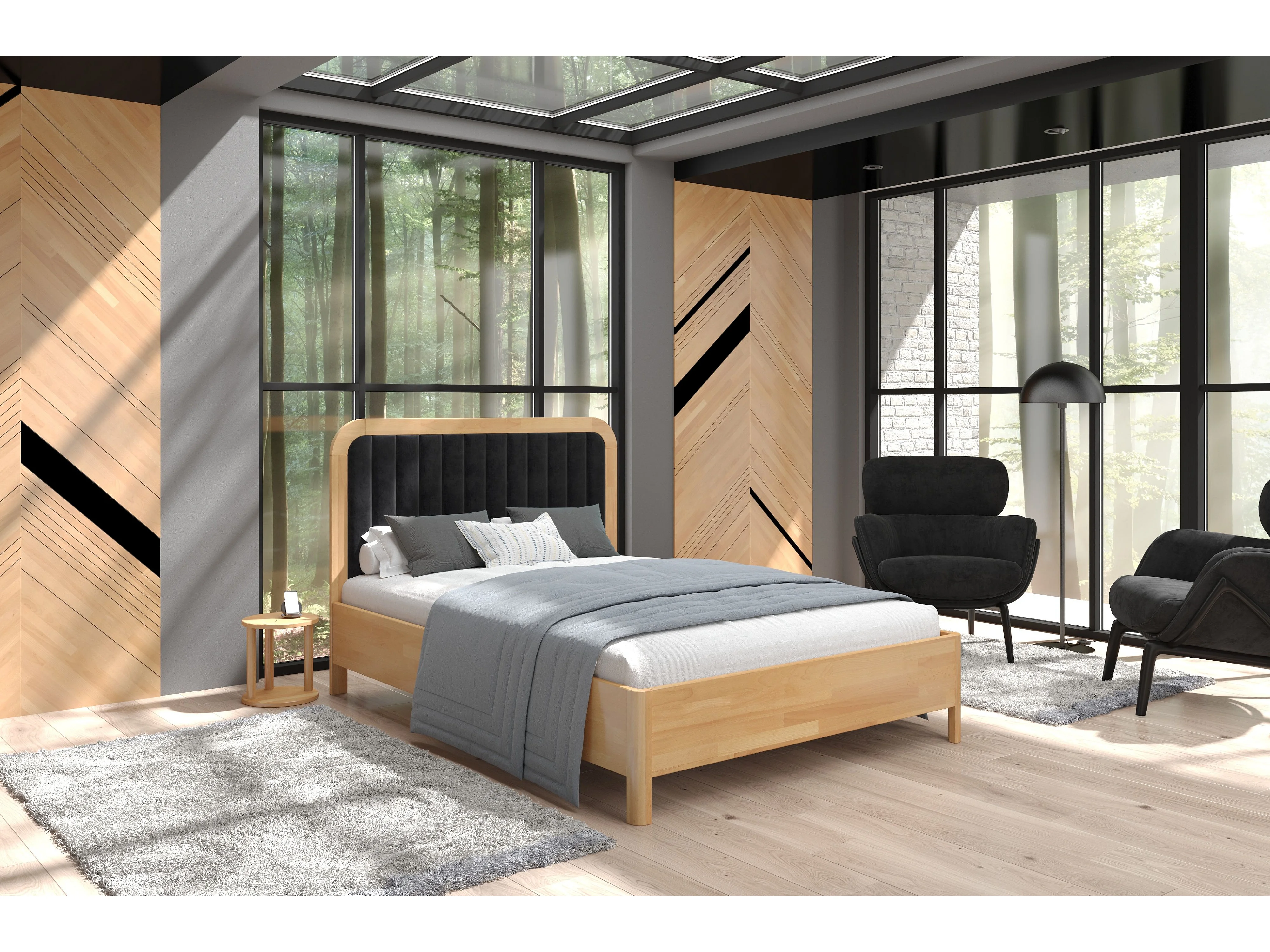 Massivholzbett Modena, gepolstertes kopfteil, buche - lackiert, naturfarben/schwarz, 140x200