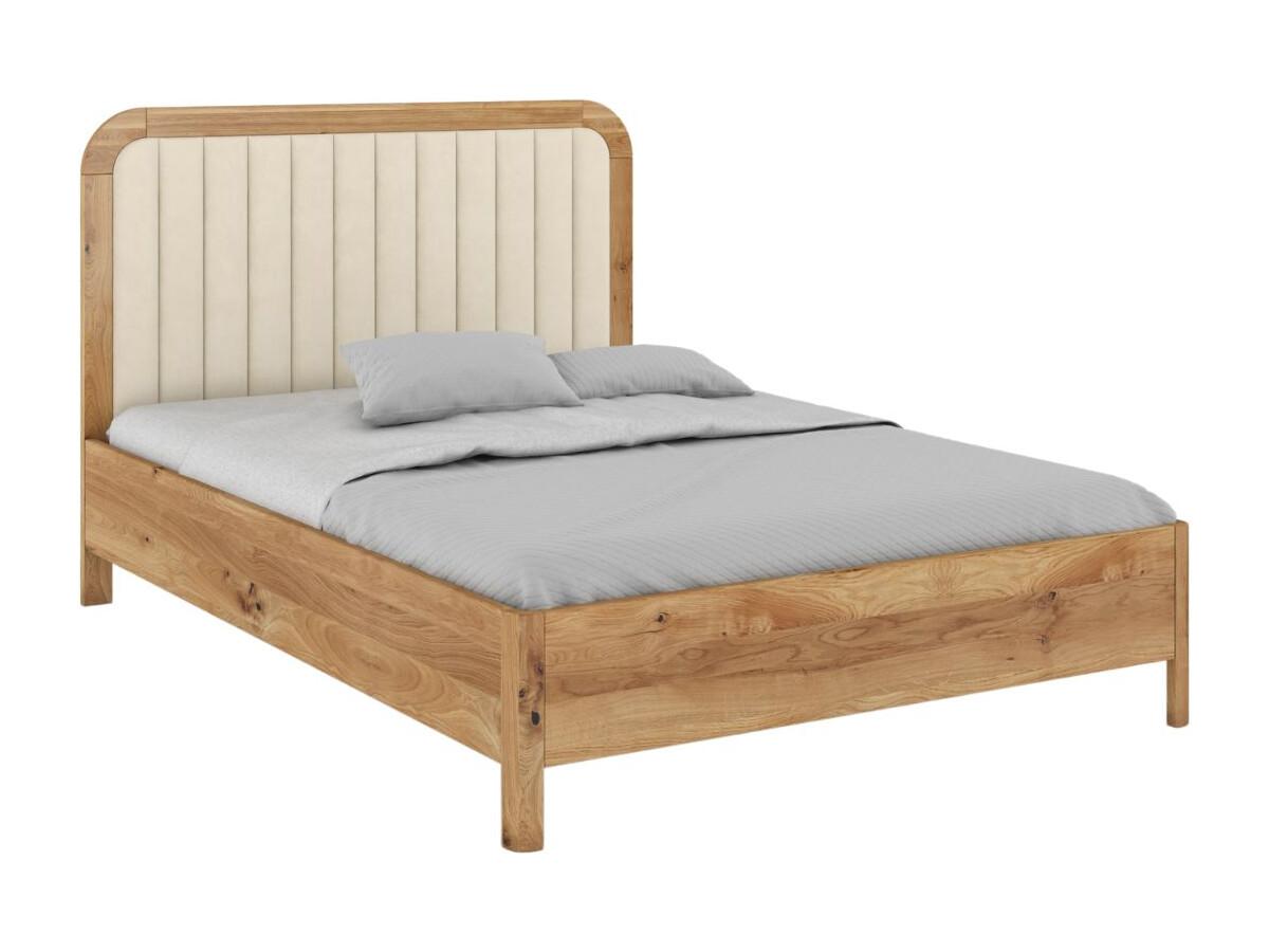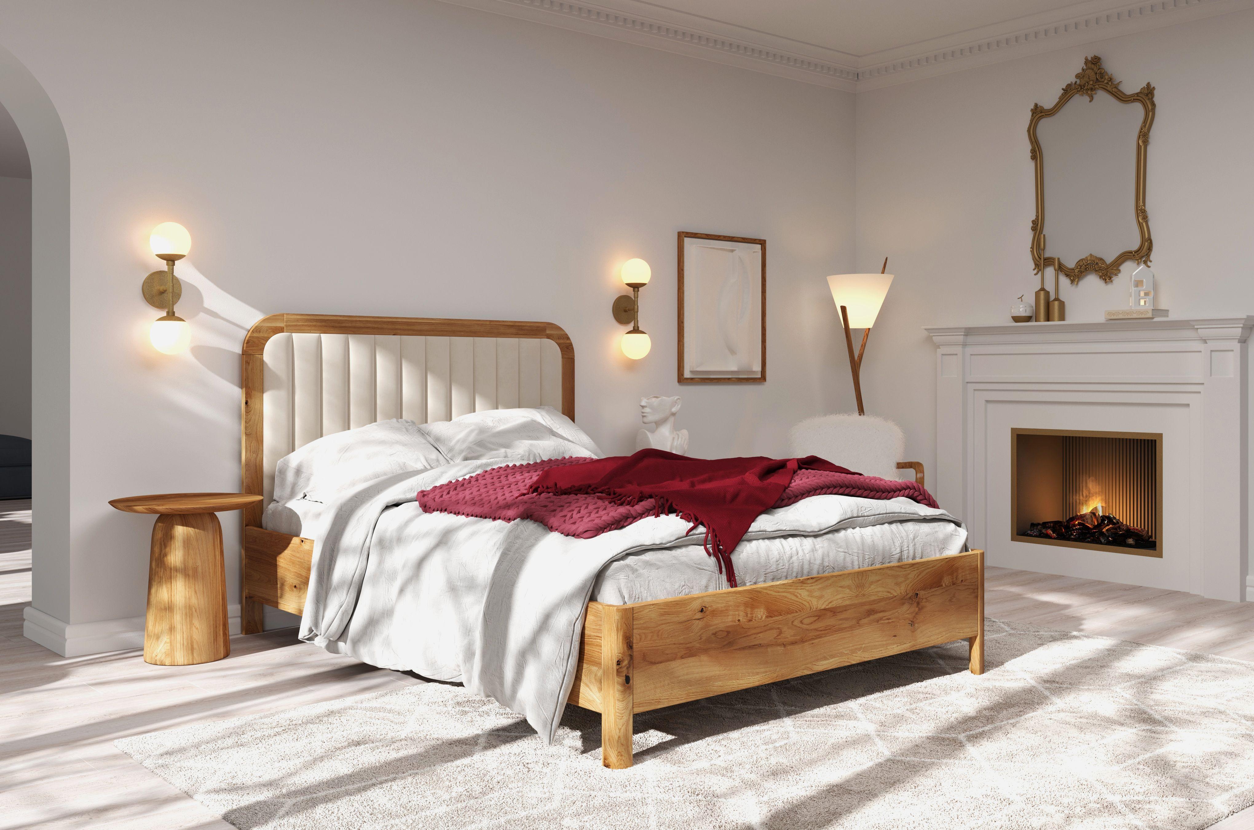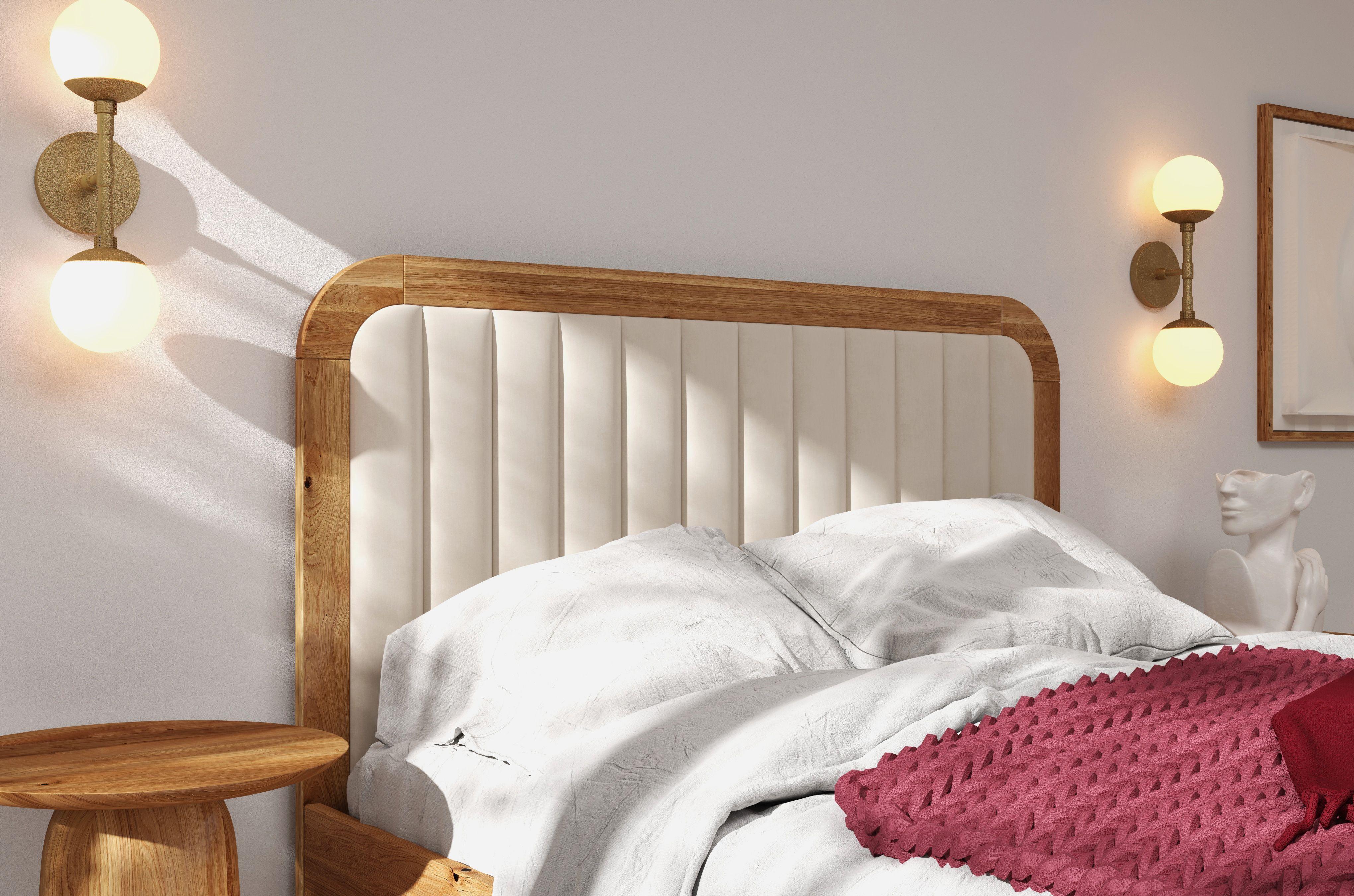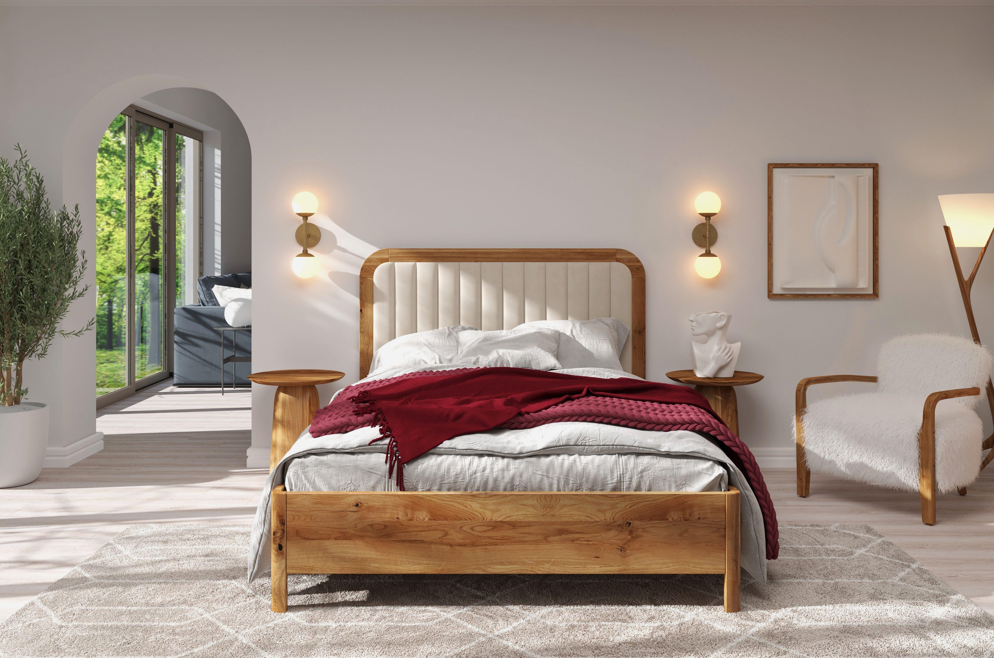 Massivholzbett Modena, gepolstertes kopfteil, eiche - lackiert, naturfarben/ecru, 140x200