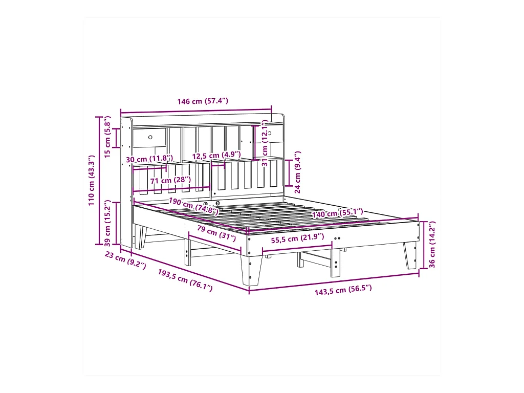 Massivholzbett ohne Matratze 140x190 cm Kiefernholz