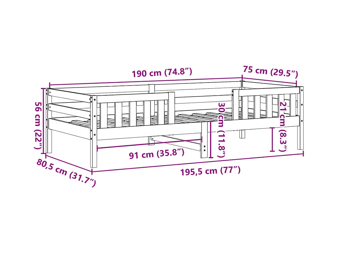 Massivholzbett ohne Matratze 75x190 cm Kiefernholz