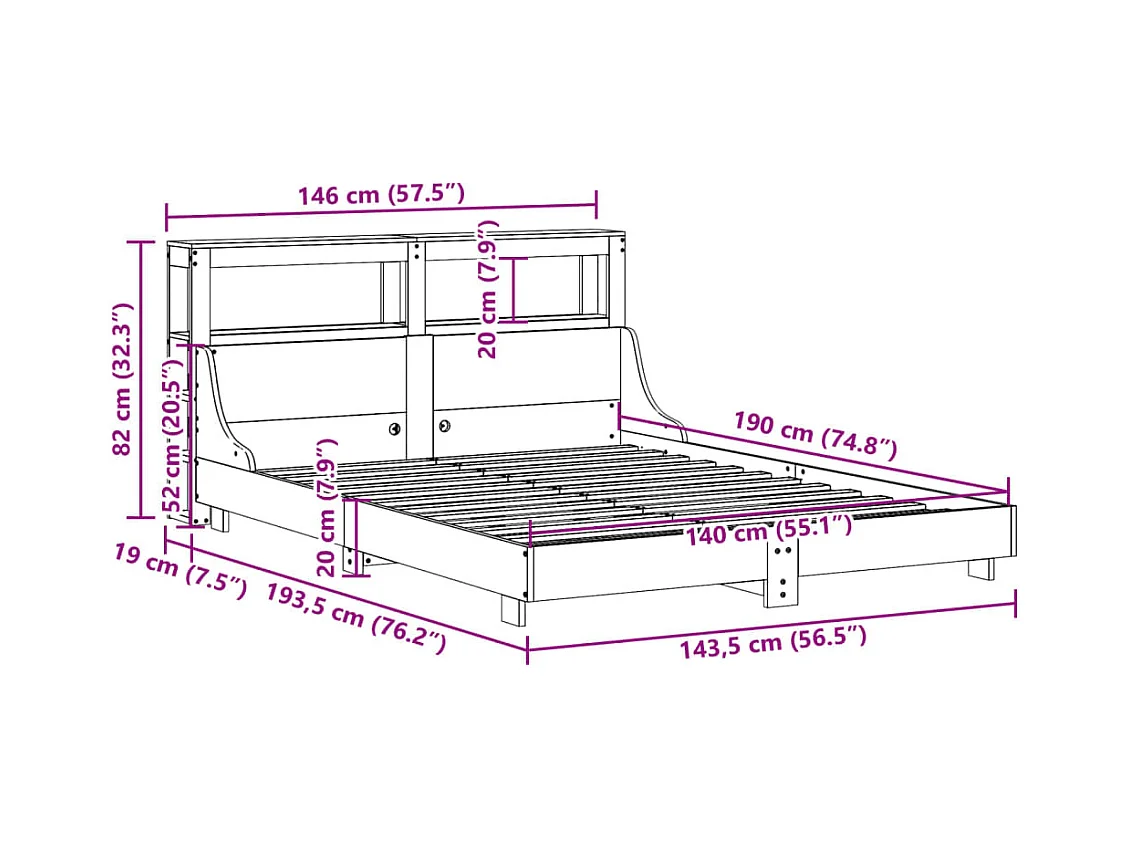 Massivholzbett ohne Matratze Wachsbraun 140x190 cm Kiefernholz