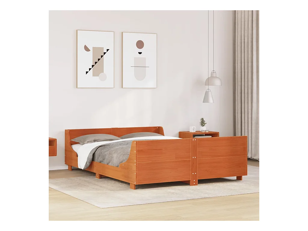 Massivholzbett ohne Matratze Wachsbraun 140x200 cm Kiefernholz