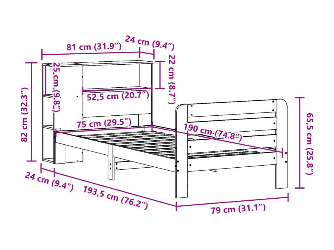 Massivholzbett ohne Matratze Wachsbraun 75x190 cm Kiefernholz