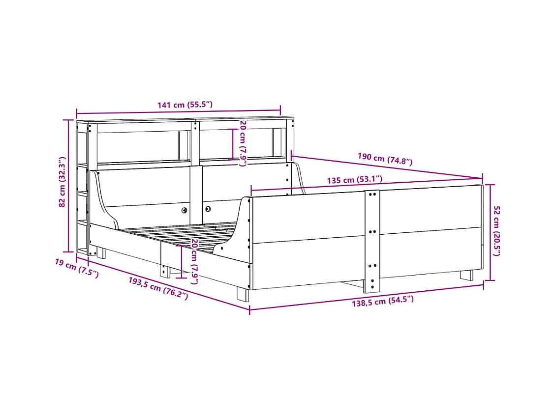 Massivholzbett ohne Matratze Weiß 135x190 cm Kiefernholz