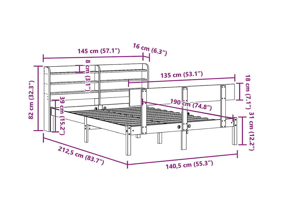 Massivholzbett ohne Matratze Weiß 135x190 cm Kiefernholz