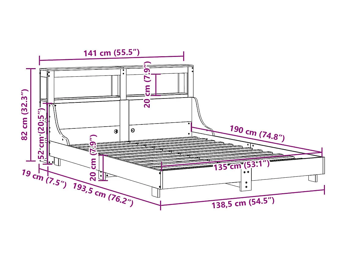 Massivholzbett ohne Matratze Weiß 135x190 cm Kiefernholz