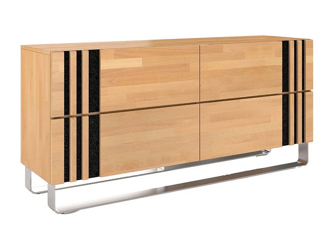 Massivholzkommode Kielce mit metallfüßen, buche - lackiert, naturfarben, schwarz glas