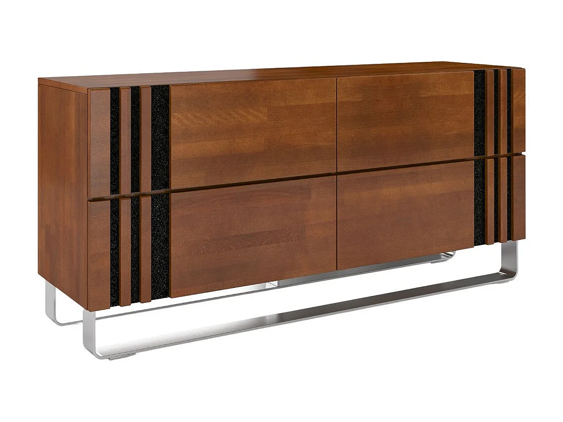 Massivholzkommode Kielce mit metallfüßen, buche - lackiert, nussbaumfarbe, schwarz glas