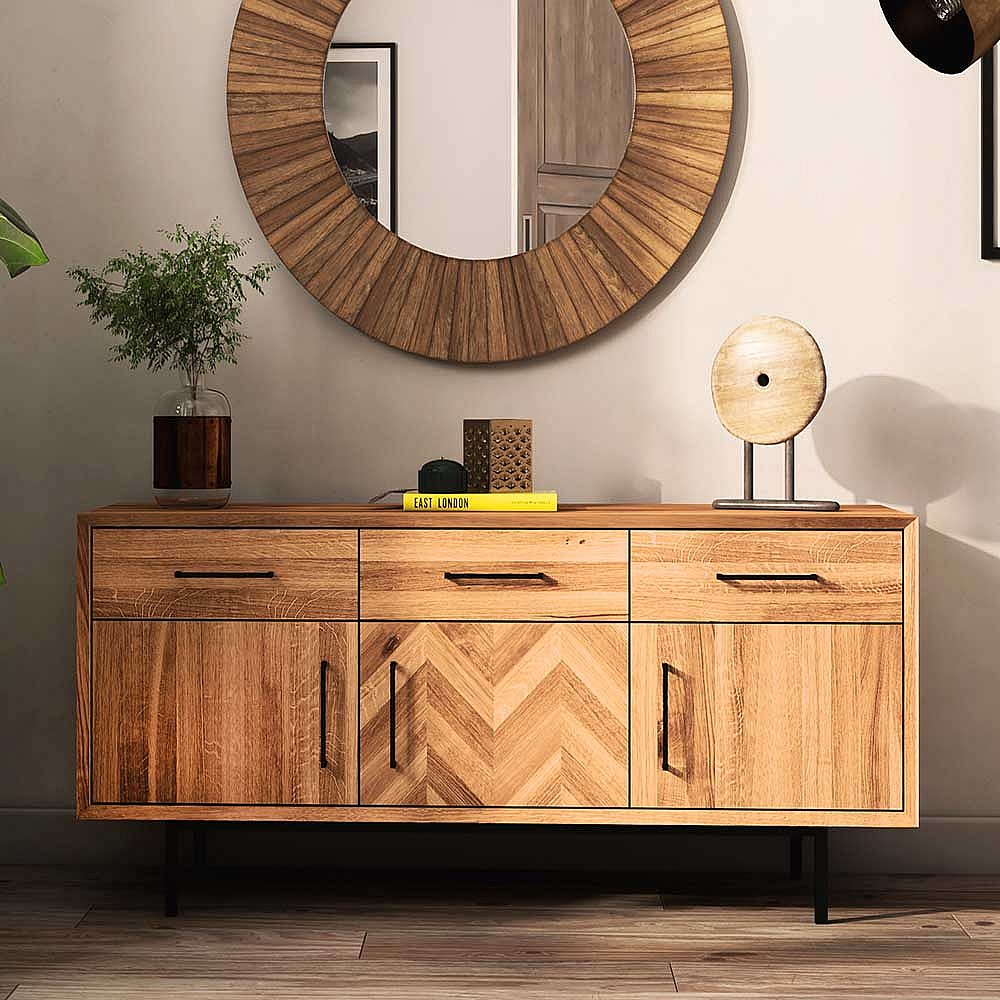 Massivholzkommode Wildeiche mit drei Schubladen Dreht�ren