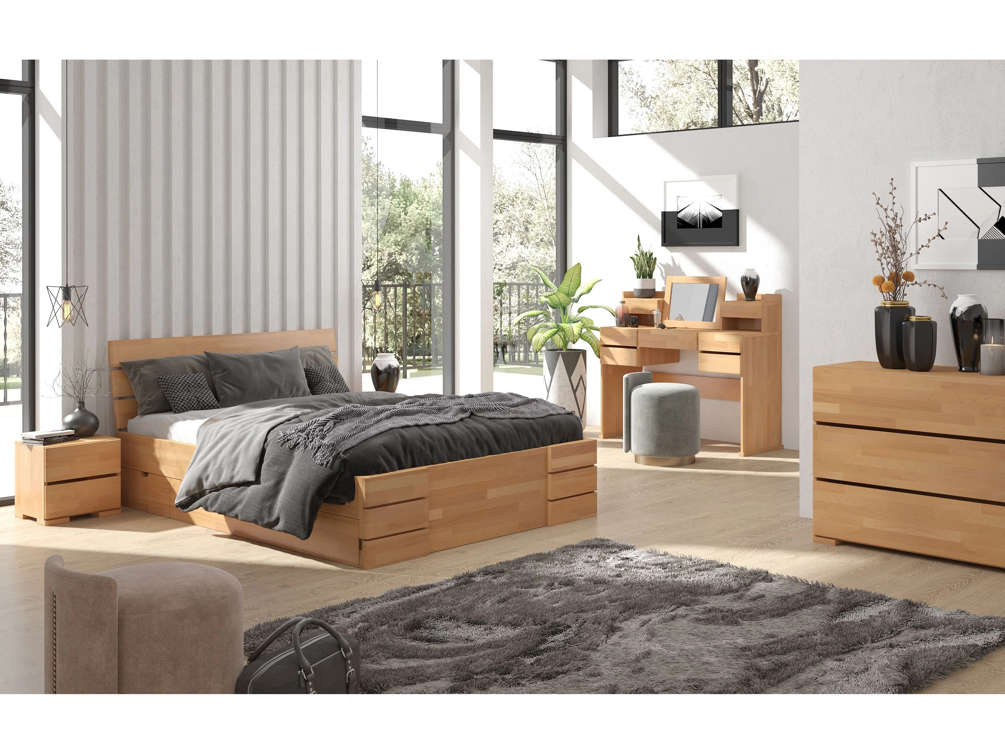Massivholznachttisch Sandema mit zwei schubladen, buche - lackiert, naturfarben