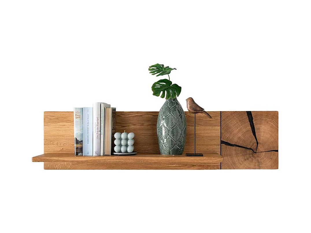 Massivholzregal aus Wildeiche geölt Hirnholz Applikation