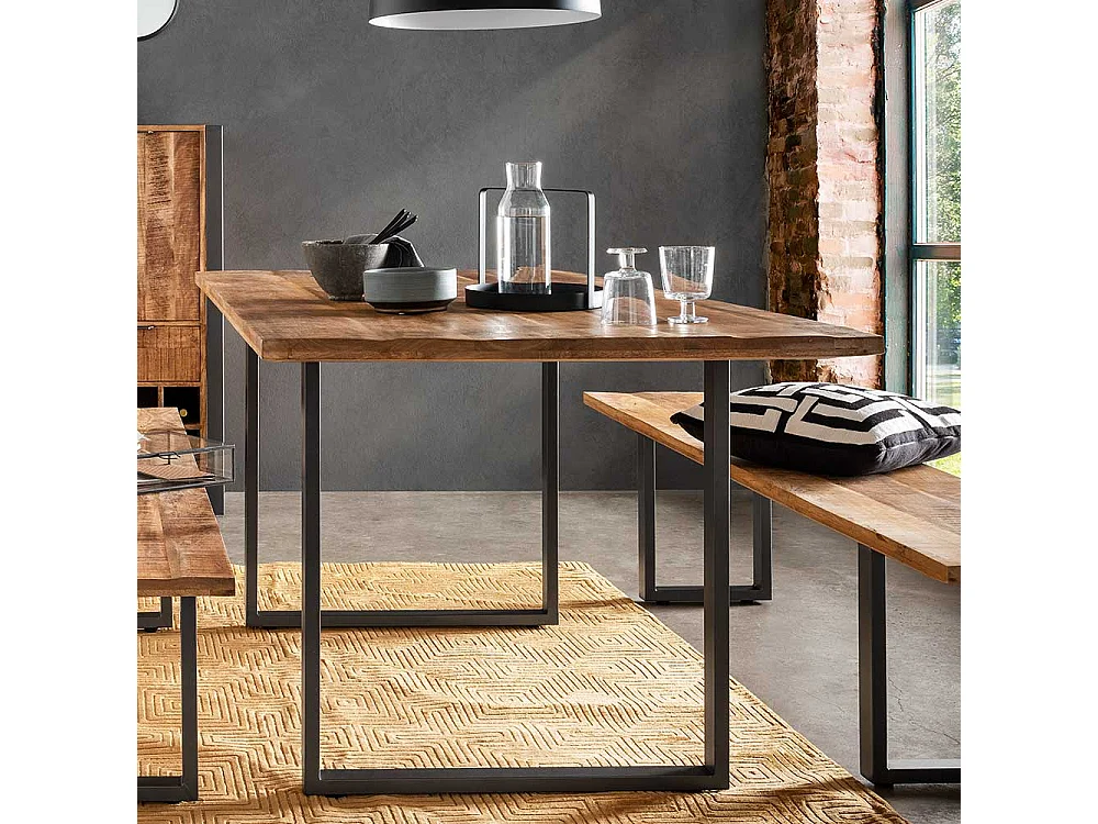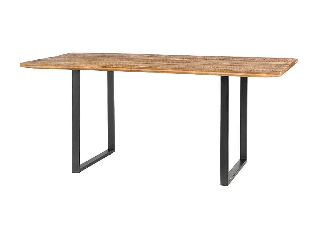 Massivholztisch aus Recyclingholz und Metall Bügelgestell