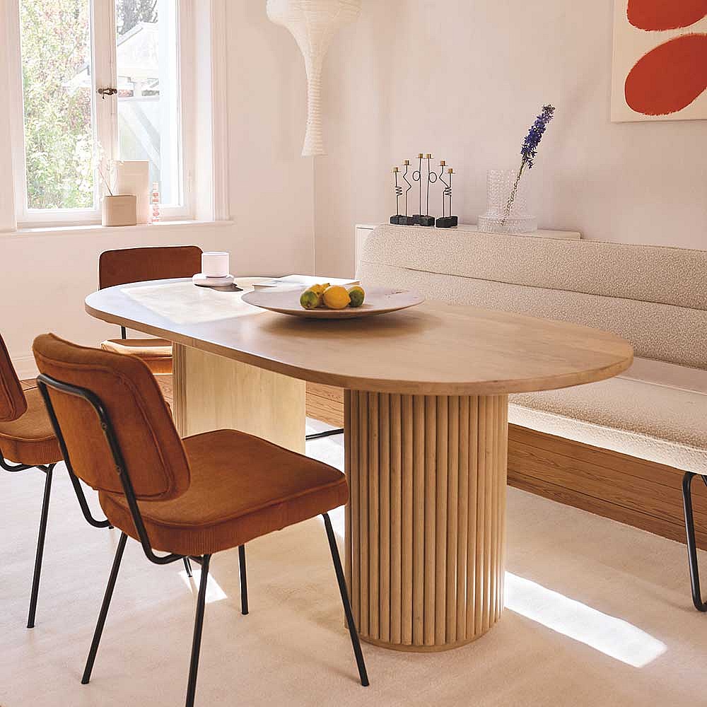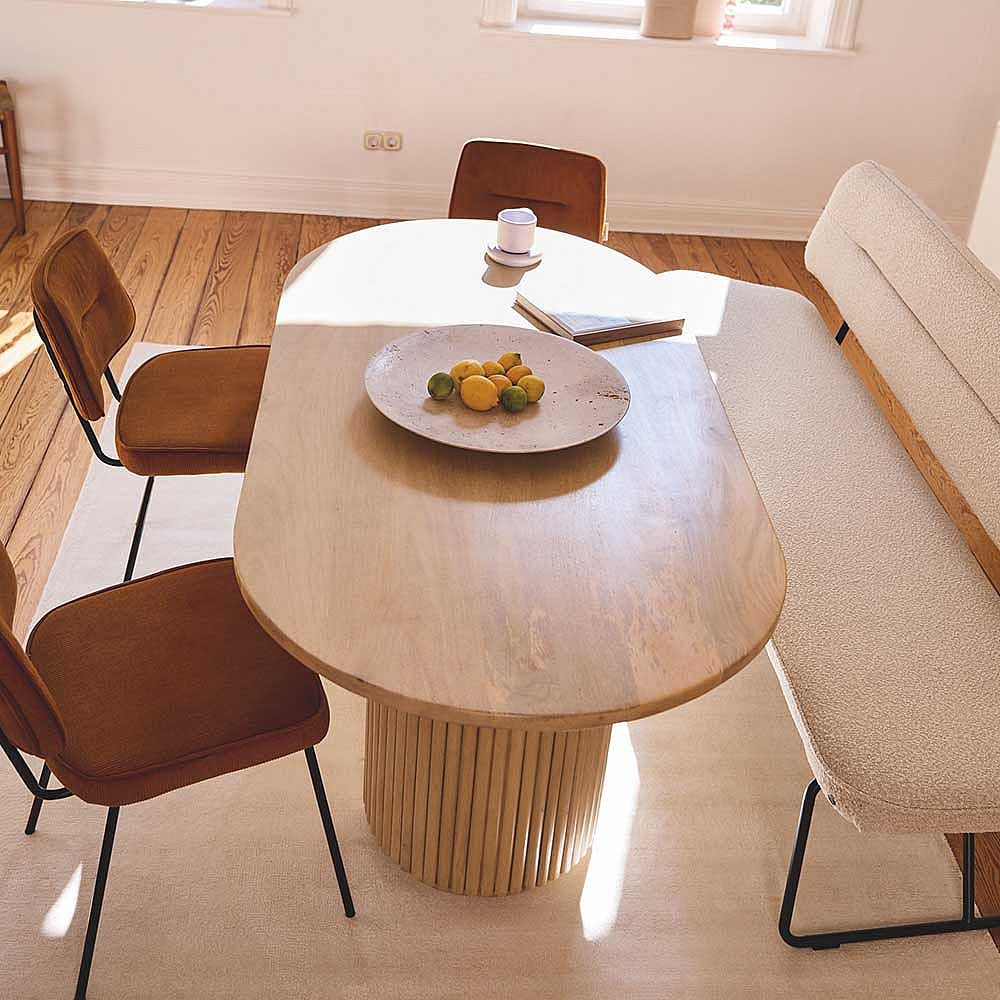 Massivholztisch Esstisch in Mangoholz Naturfarben im Skandi Design