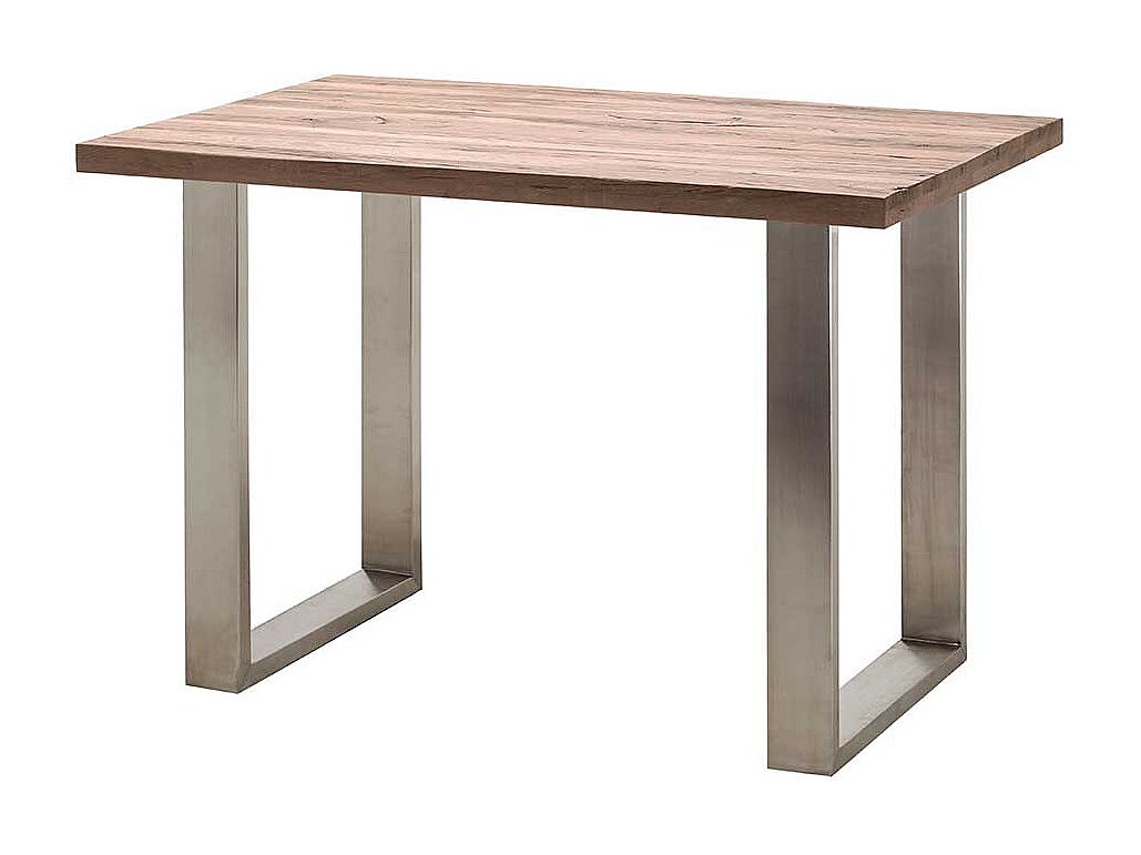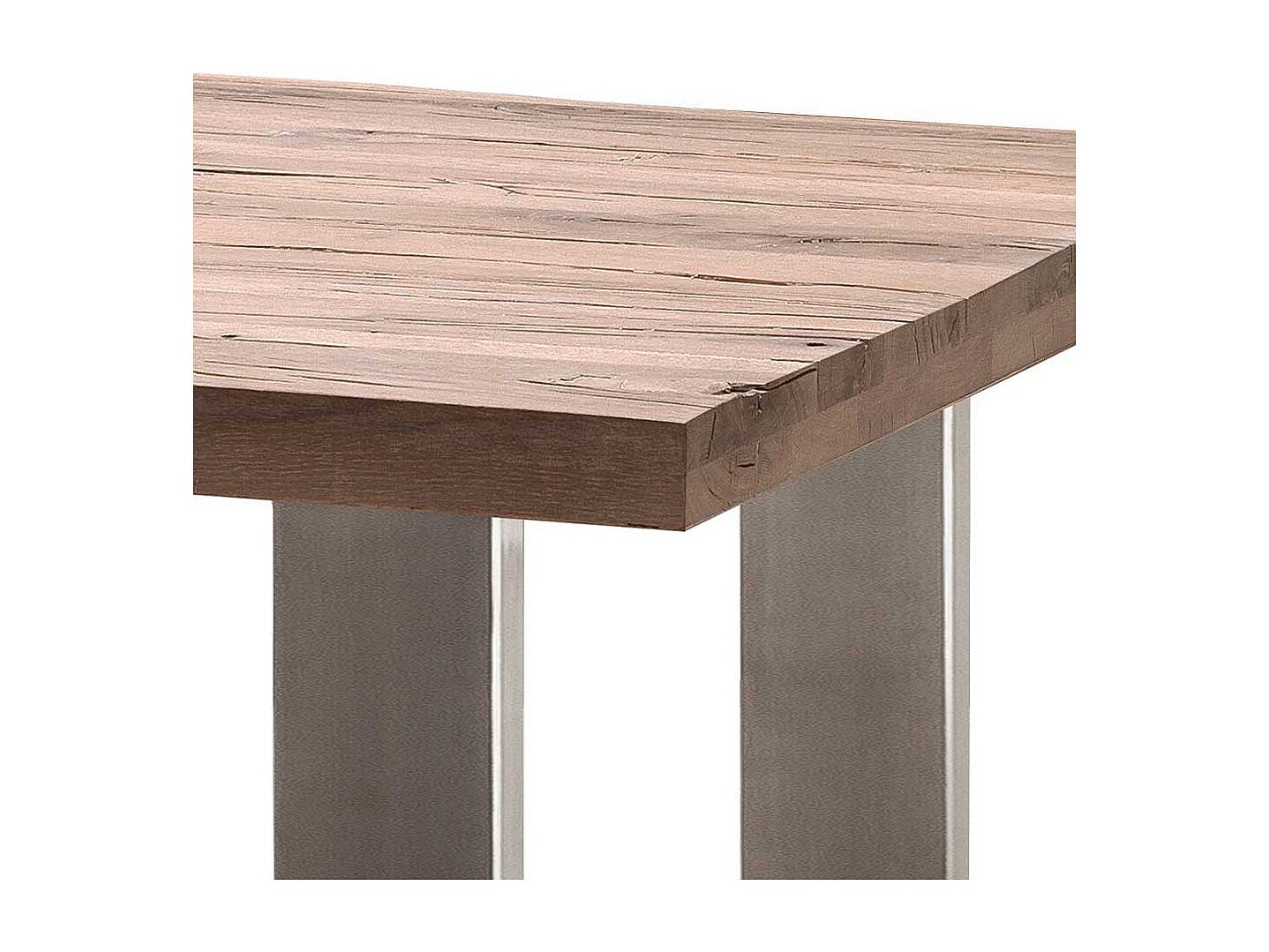 Massivholztisch in Eiche gekälkt Edelstahl Bügelgestell