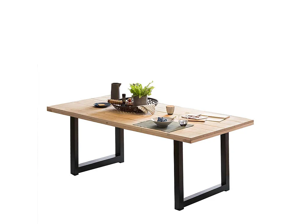 Massivtisch Gerüstholz Platte naturbelassen Bügelgestell