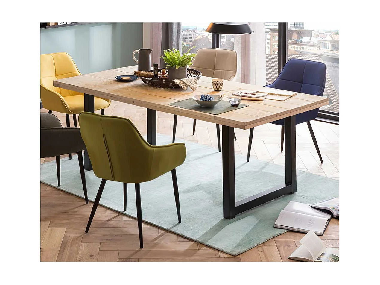 Massivtisch Gerüstholz Platte naturbelassen Bügelgestell