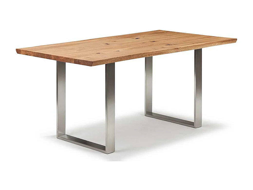 Massivtisch Wildeiche mit Bügelgestell Edelstahl