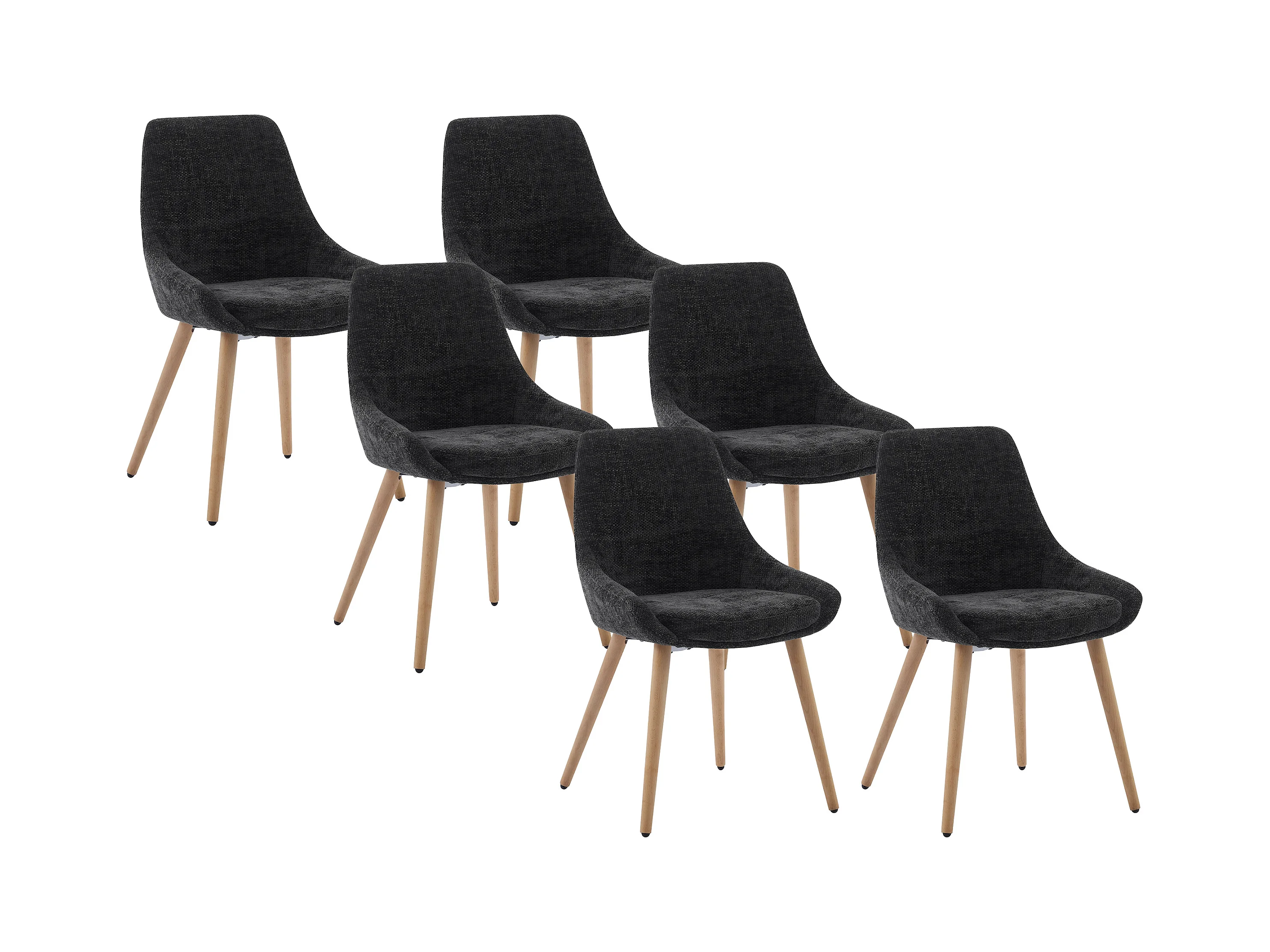 Stuhl 6er-Set - Strukturstoff & Buche - Schwarz - MASURIE