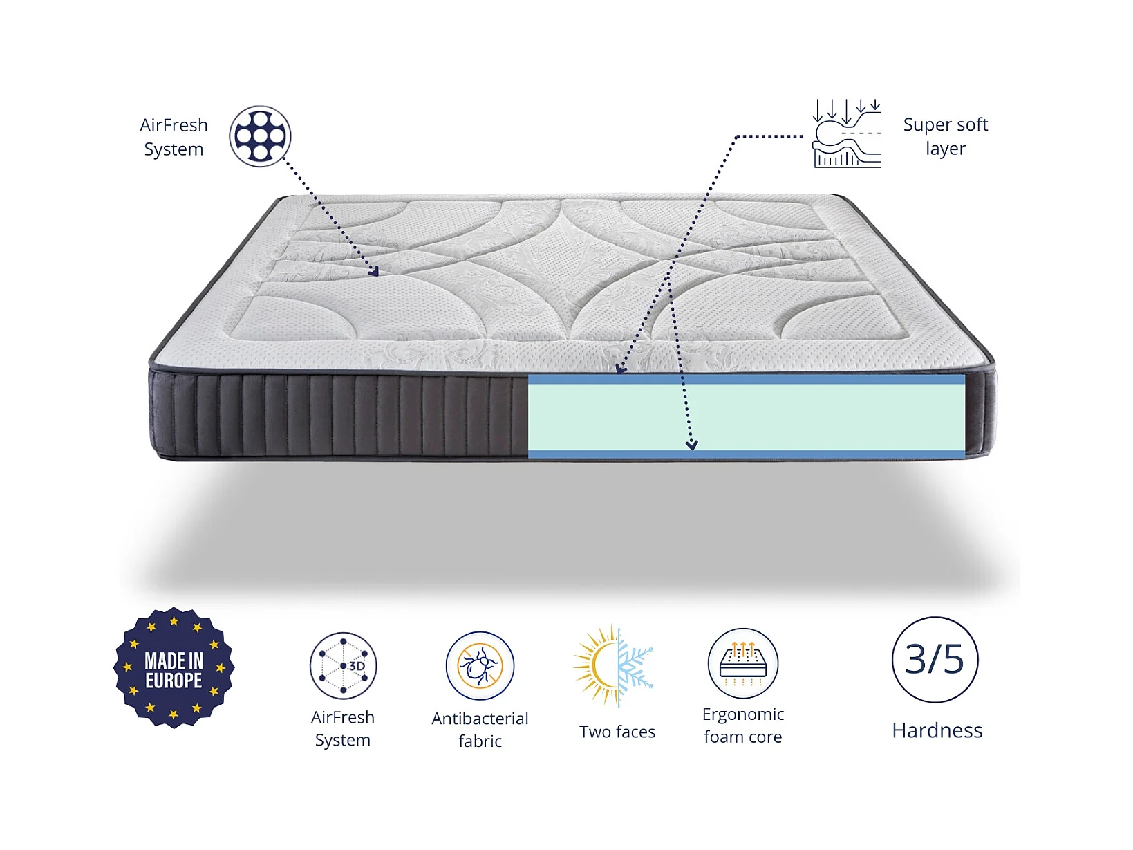 Matratze 180x190 ANTARES - H3 - Hohe 24 CM - Hochdichter Schaumstoff - Anpassungsfähiger Schaumstoff - Multi-Zone Comfort System
