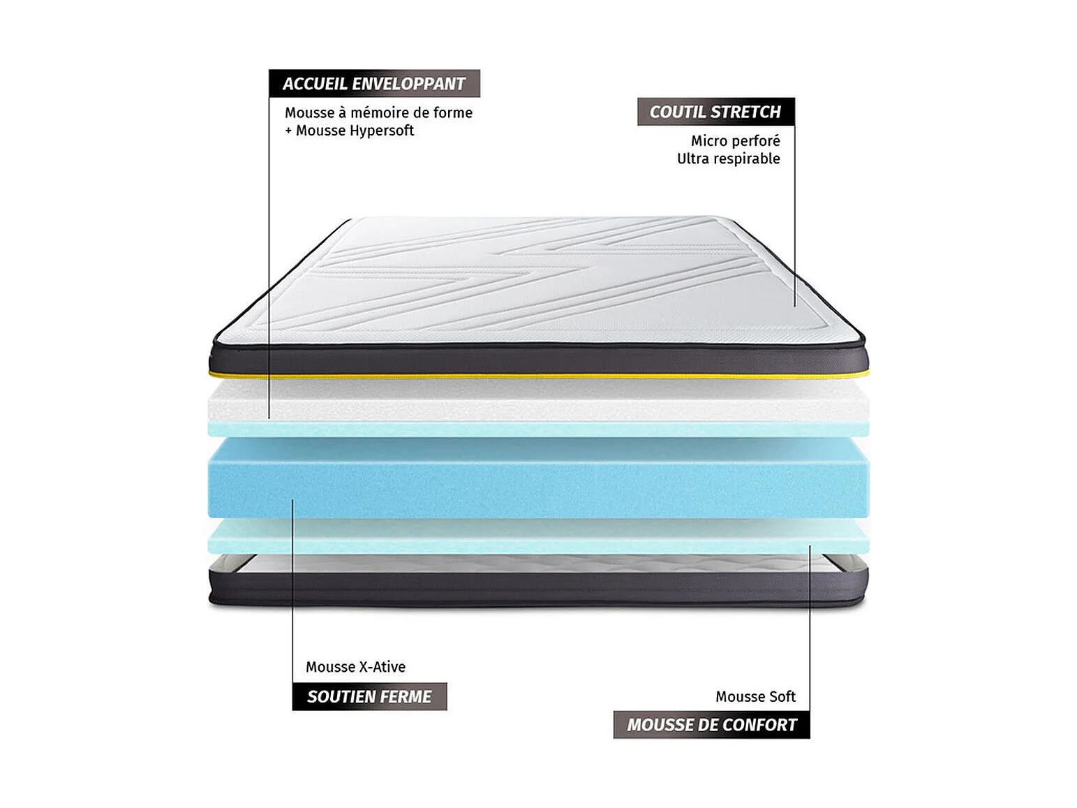 Matratze ACTIVE 200x200cm + Bettgestell mit lattenrost , Härtegrad 4 , Memory-Schaum , Höhe : 24 cm