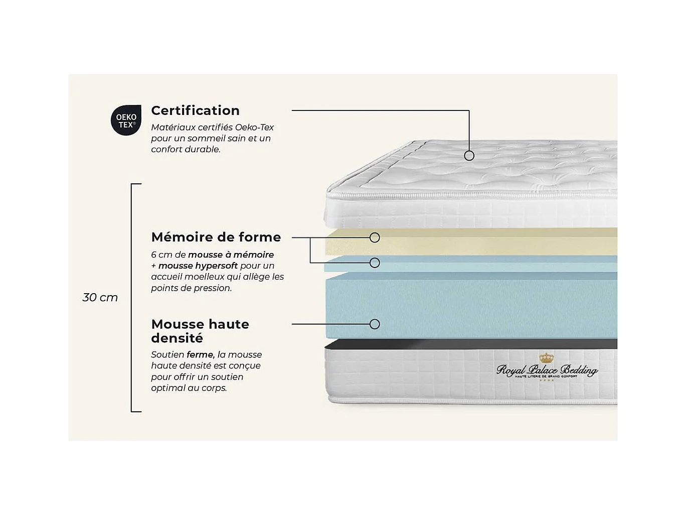 Matratze Buckingham 160 x 200 cm + Bettgestell mit lattenrost , Härtegrad 2 , Memory-Schaum , Höhe : 30