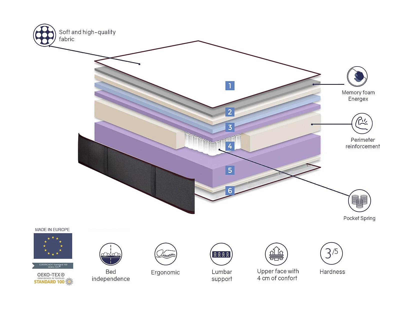 Matratze 180x200 LYRA SPRING -H3- Hohe 29cm - 3 cm real von Viscoelastik + Federn –