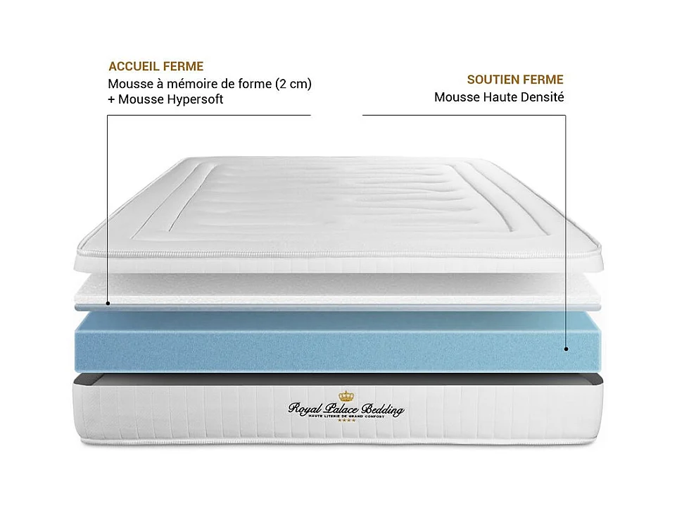 Matratze Nottingham 150 x 190 cm + Bettgestell mit lattenrost , Härtegrad 4 , Memory-Schaum , Höhe : 20 cm
