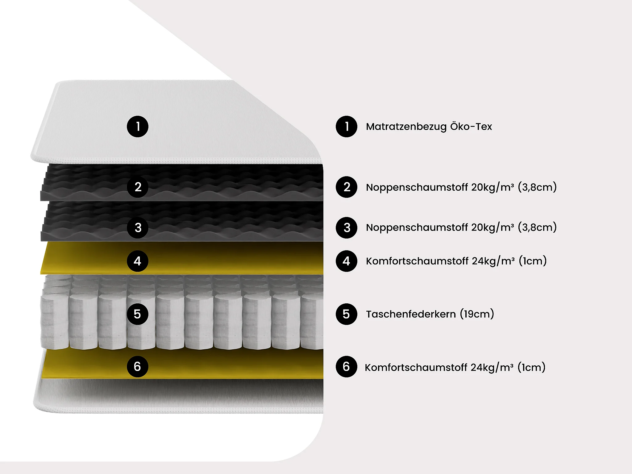 Taschenfederkernmatratze-Bettgestell-Set - 140 x 190 cm - mit integriertem Topper - 1 Zone - Härtegrad 3 - Stärke 28 cm - AMERICAN DREAM von YSMÉE