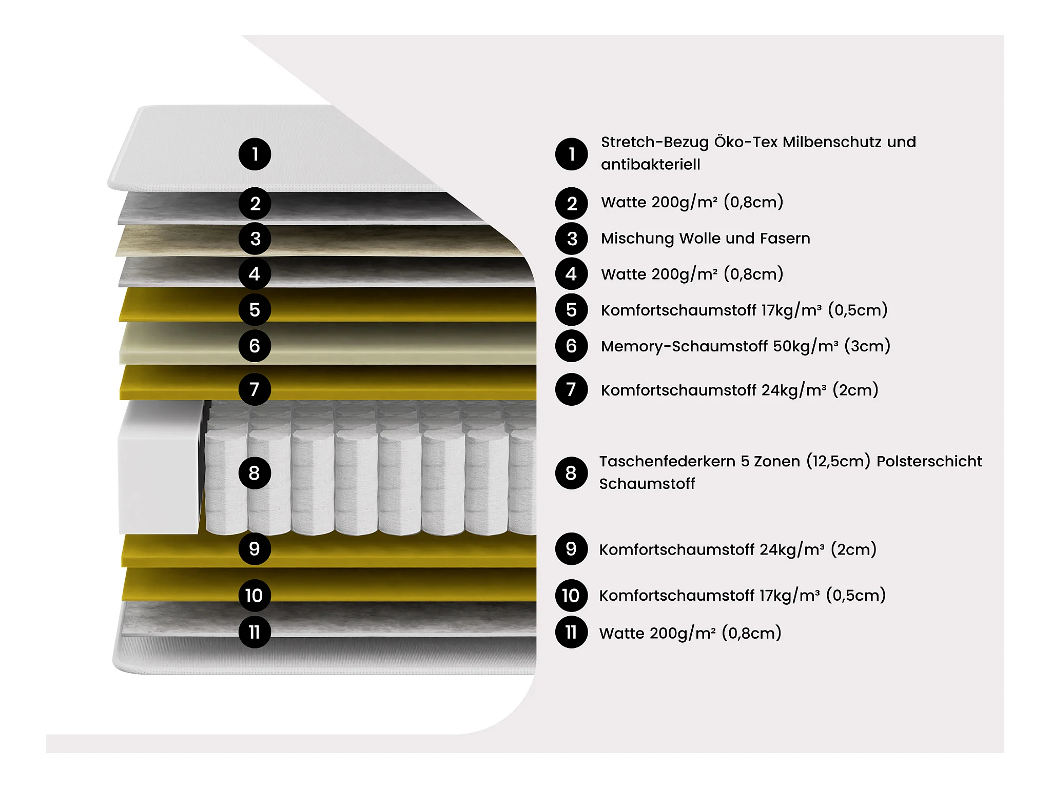 • Taschenfederkernmatratze mit 5 Komfortzonen
