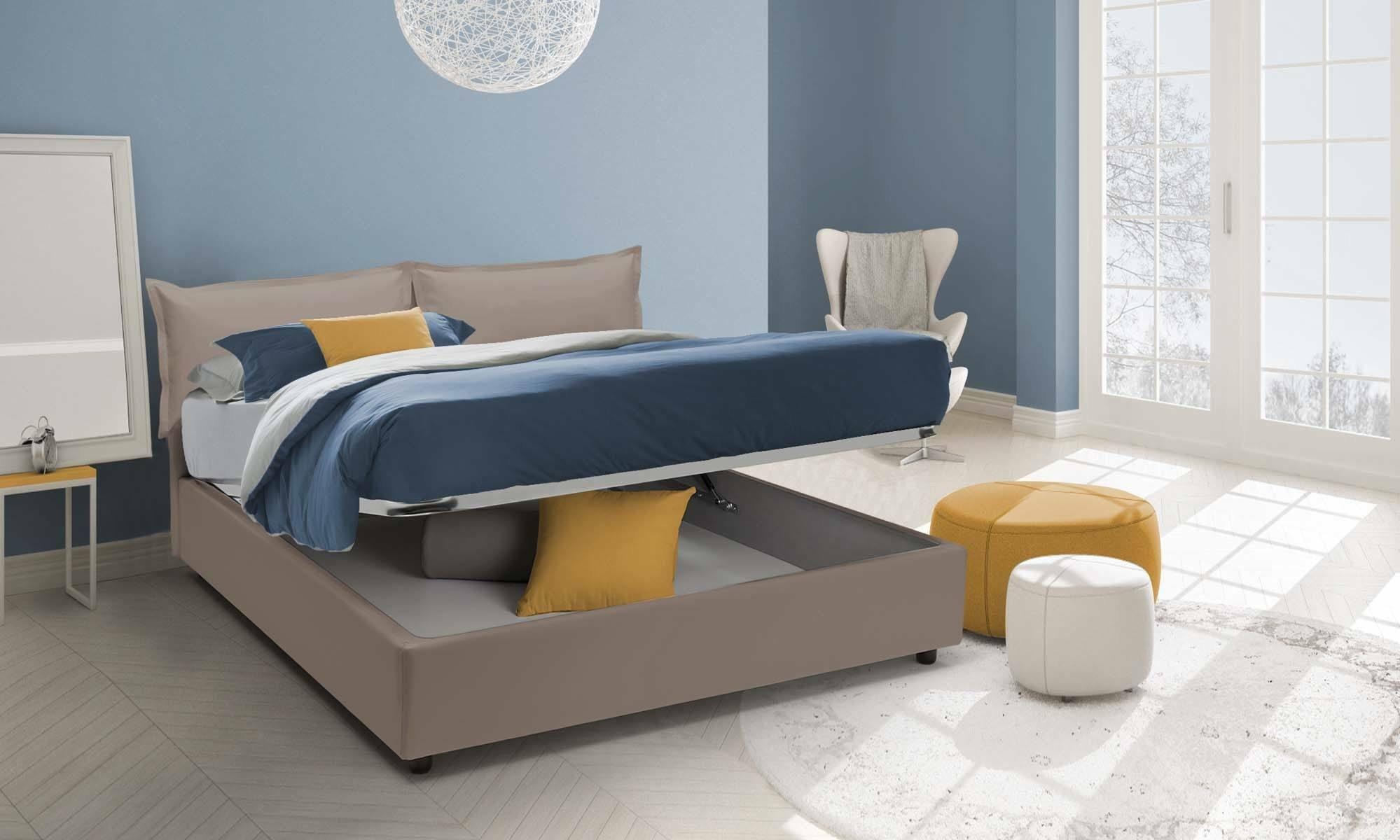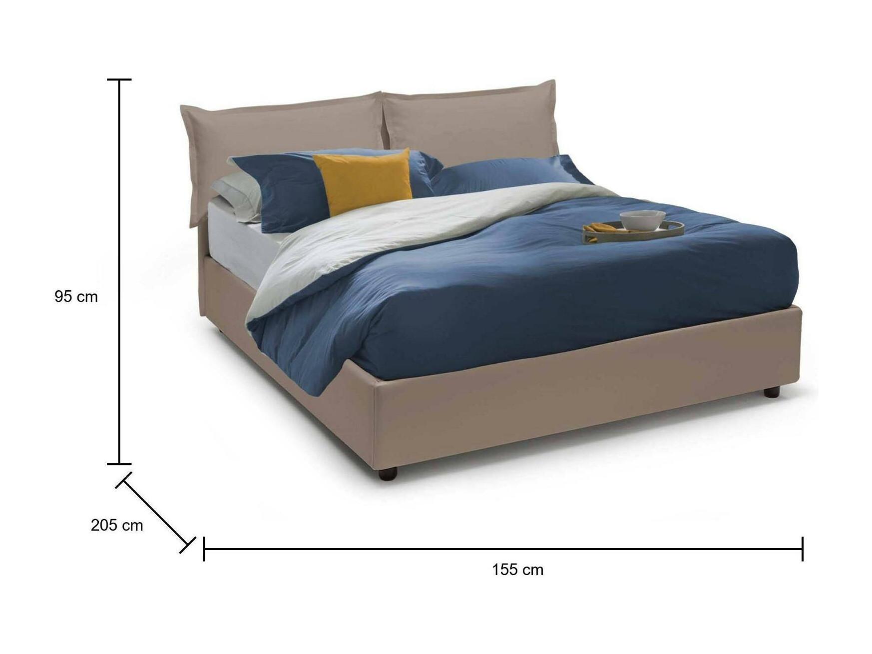 Maya-Doppelbett, Stauraumbett mit Kunstlederbezug, 100 % Made in Italy, Öffnung vorne, geeignet für Matratze 140 x 190 cm, taubengrau