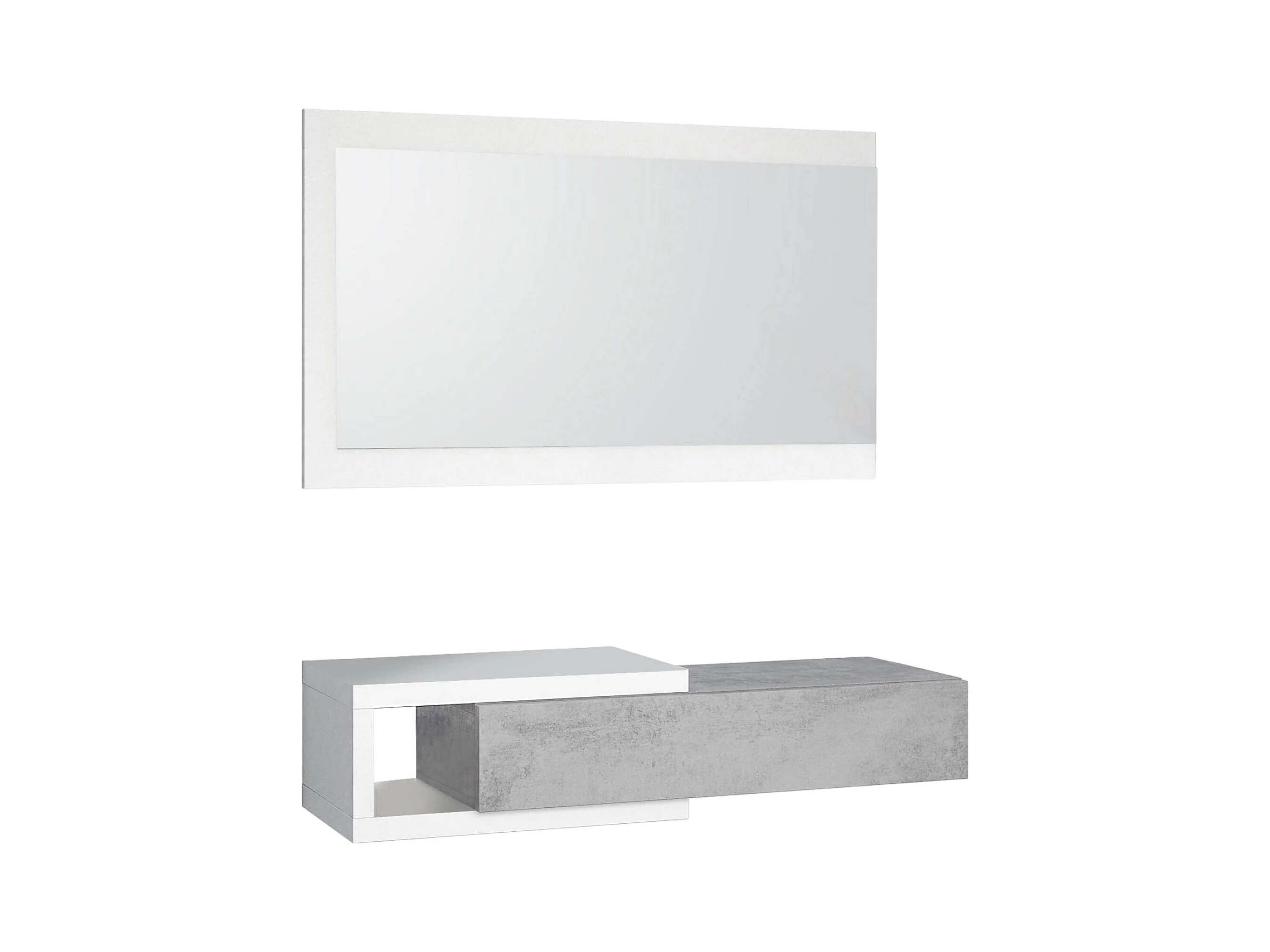 Mcallen Eingangsmöbel, Wendeeingang mit Spiegel, Flurmöbel mit Schublade, Taschentablett für Wohnungen, 95x26h69 cm, Weiß und Zement