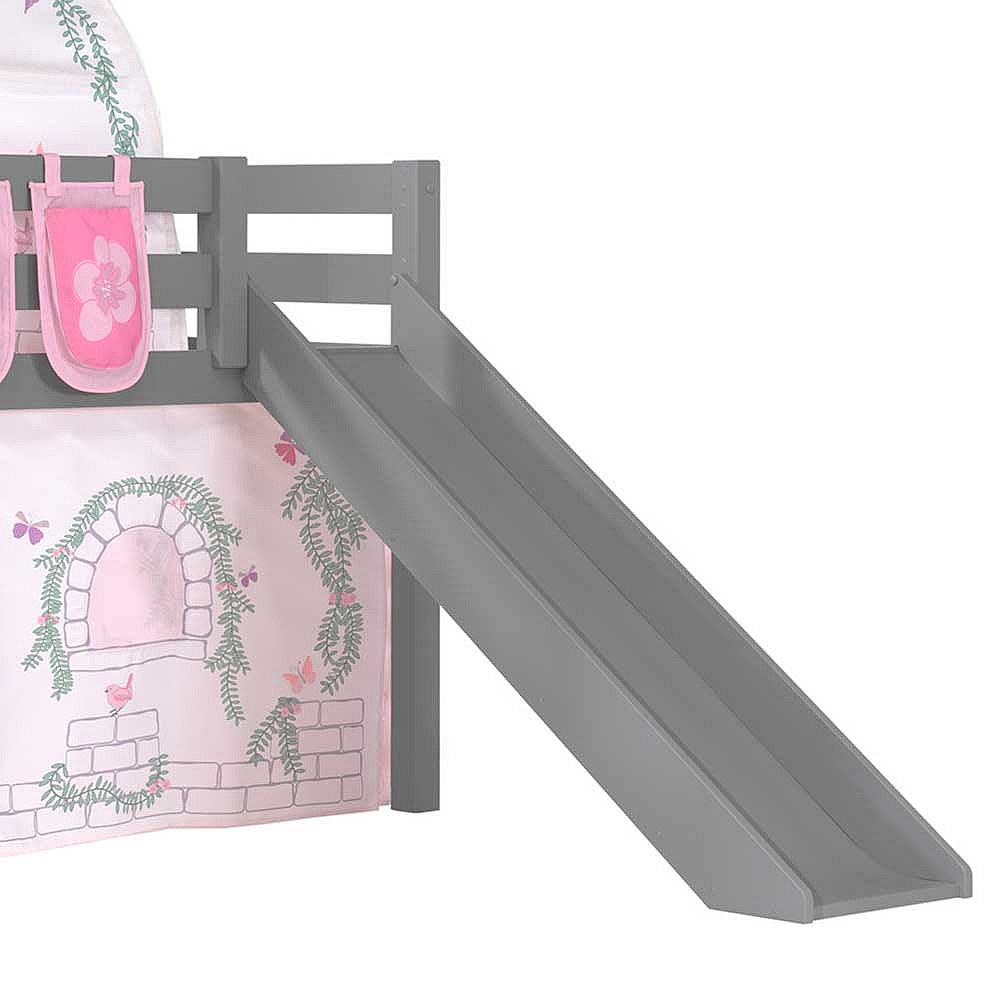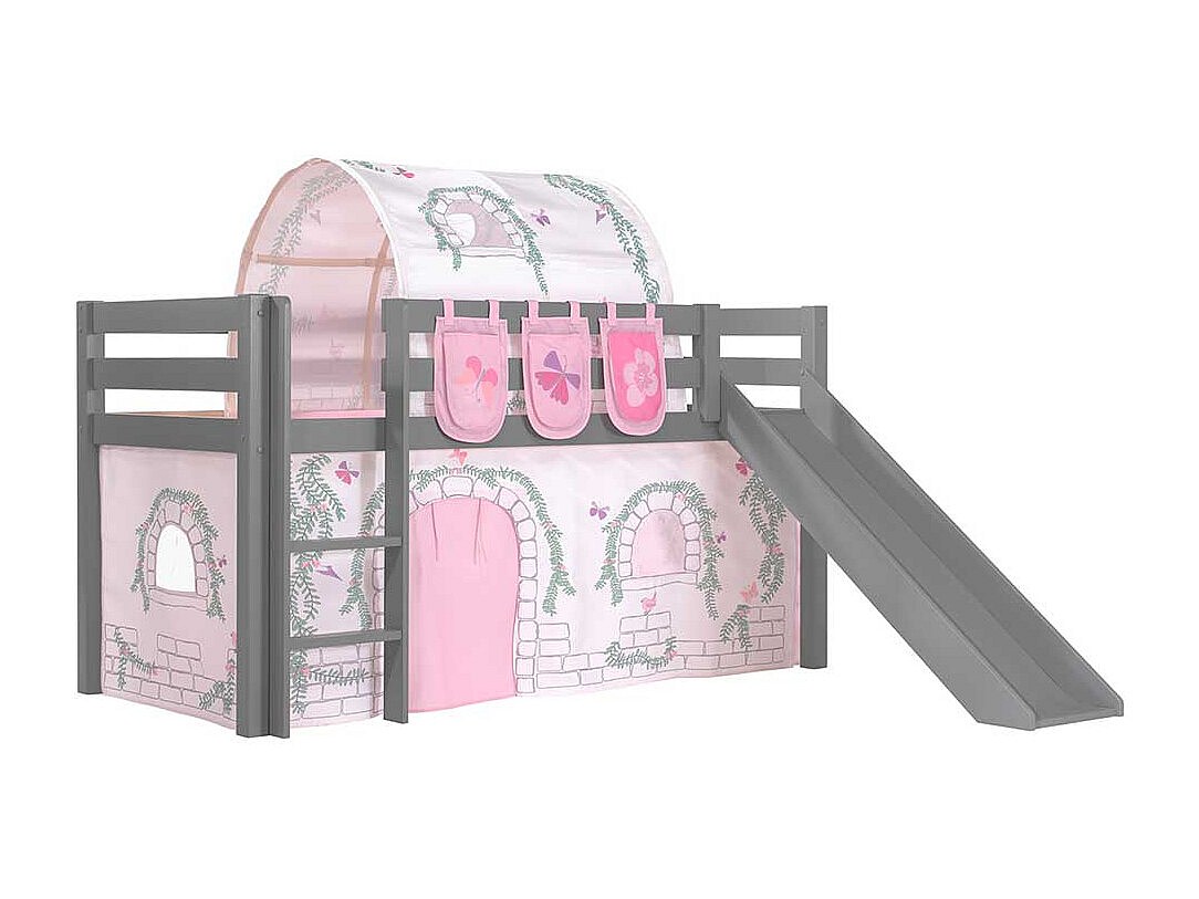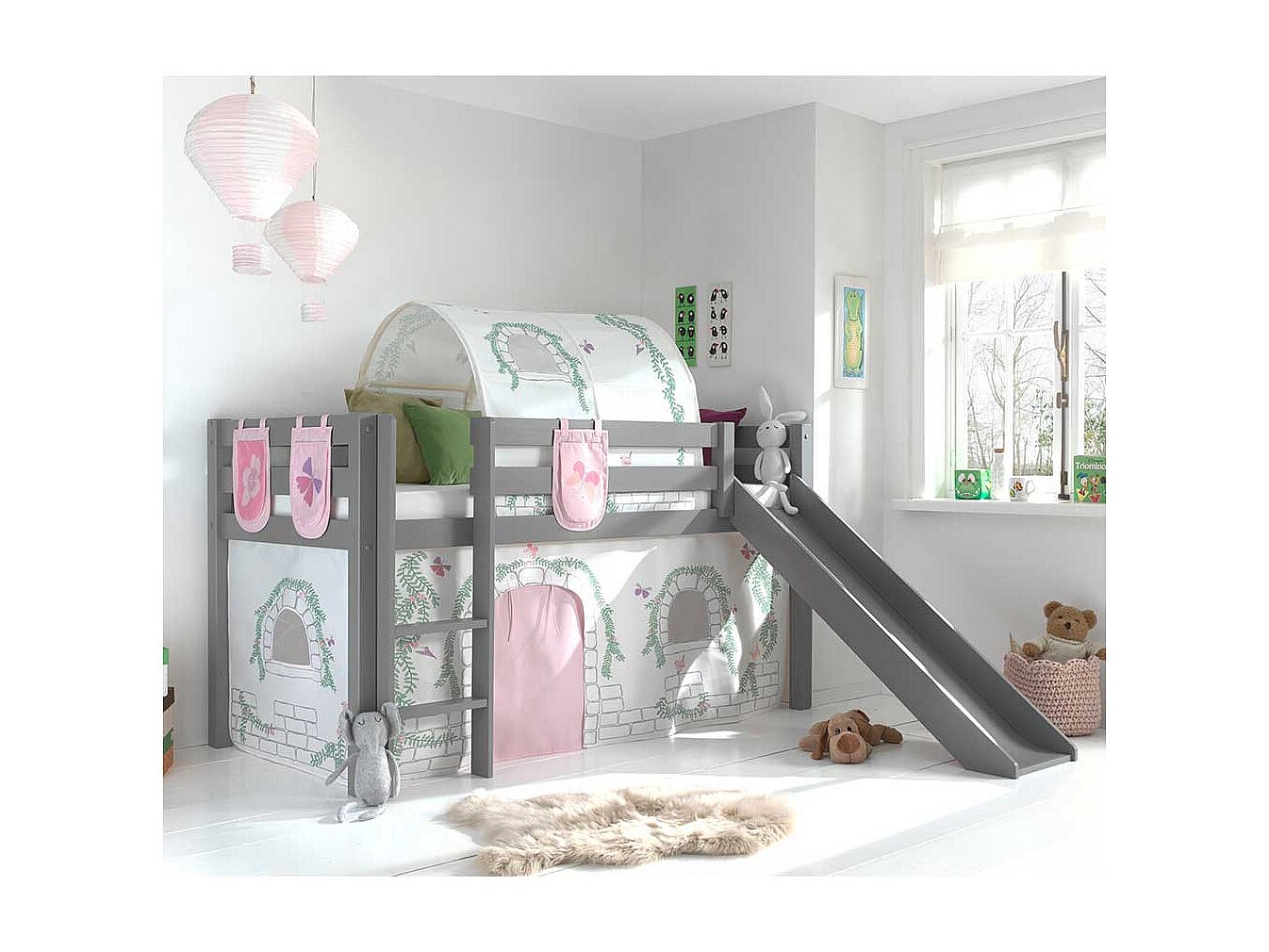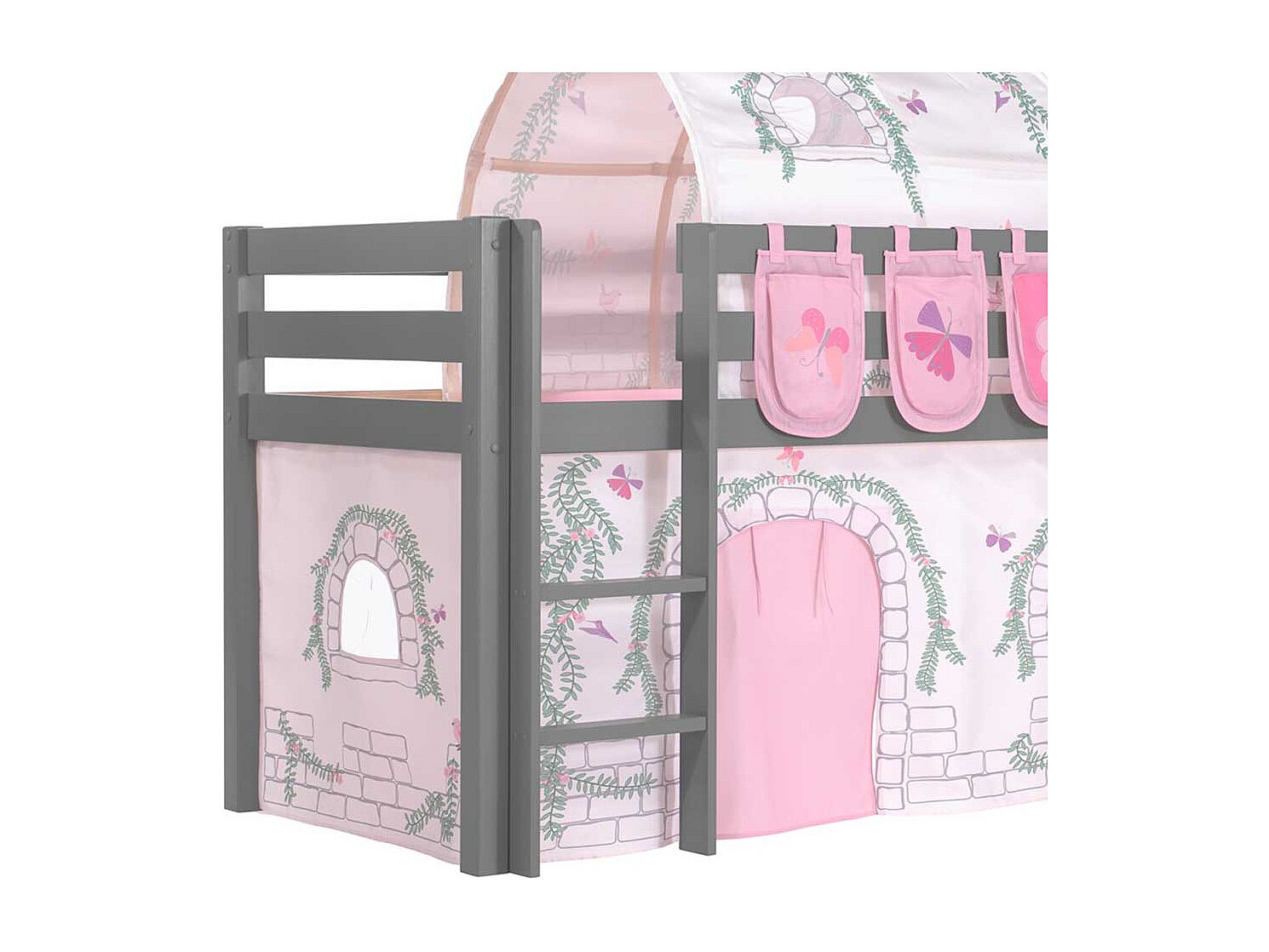Mädchen Hochbett aus Kiefer Massivholz Grau und Rosa