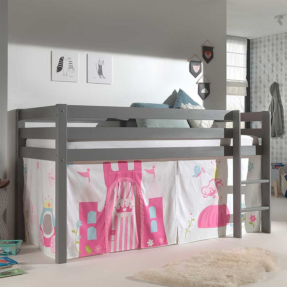 Mädchen Kinderzimmer Bett in Grau Pink Rosa Leiter und Vorhang
