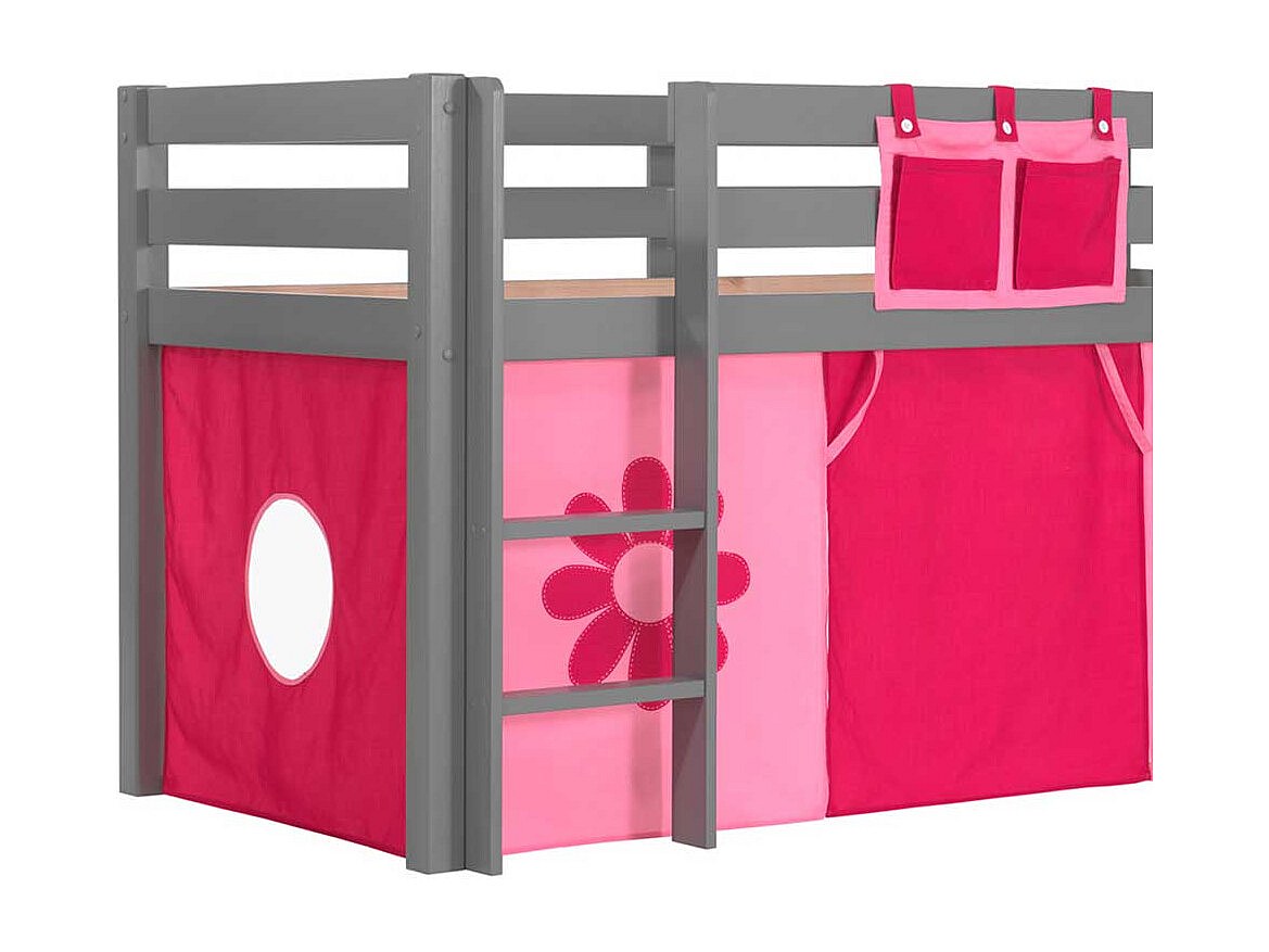 Mädchen Kinderzimmerbett in Grau Rosa Pink Blumen Motiv