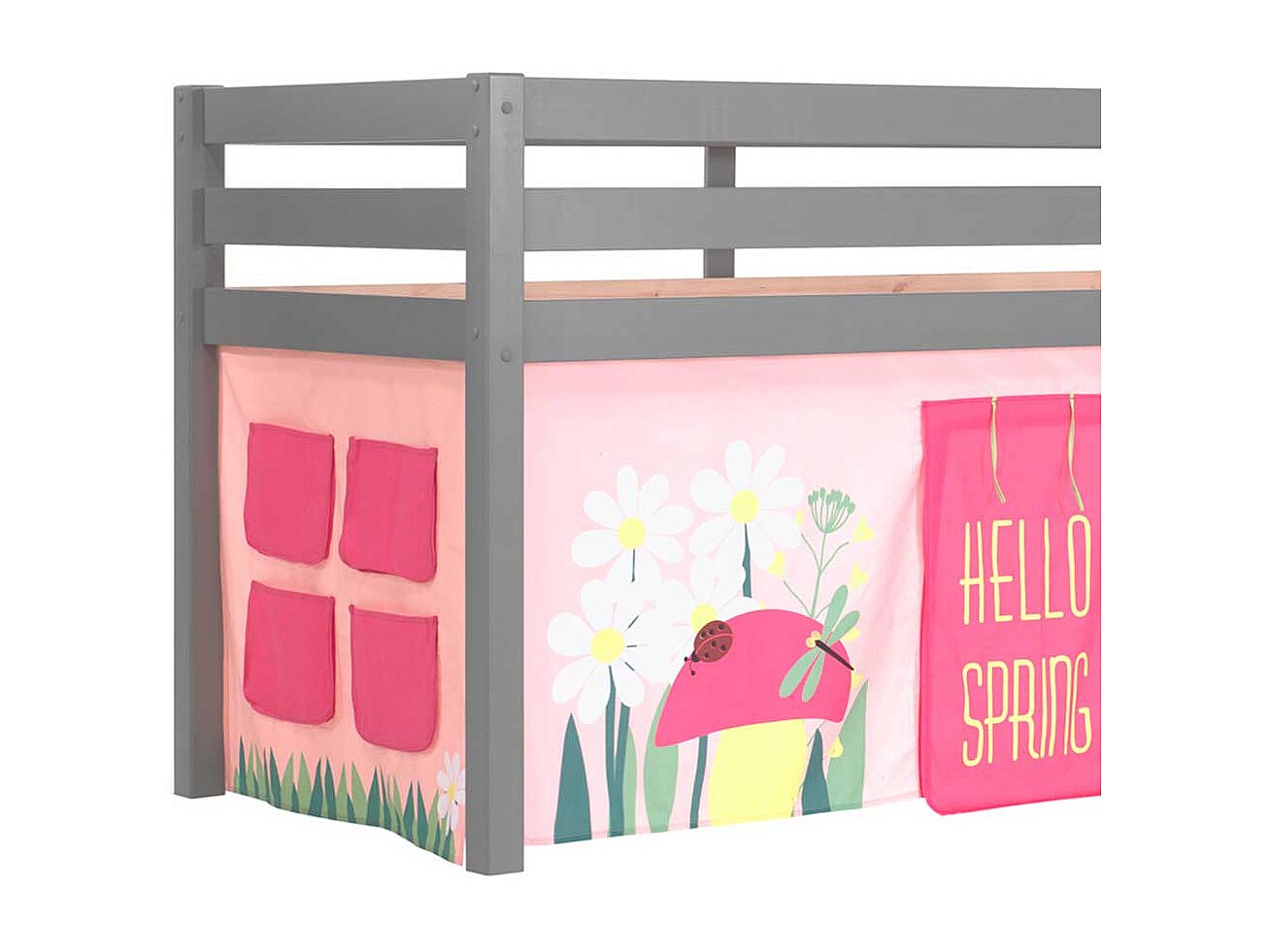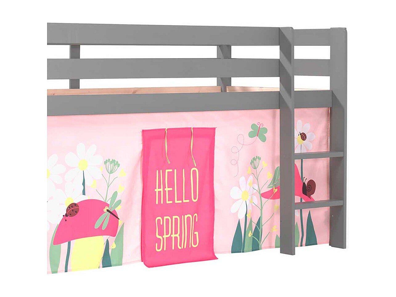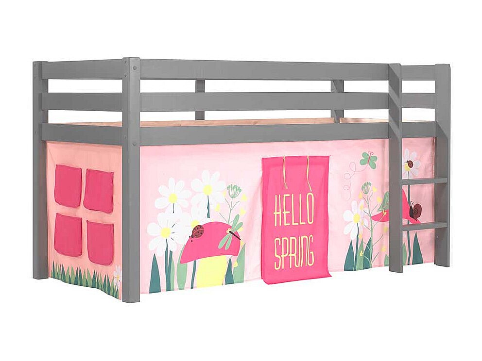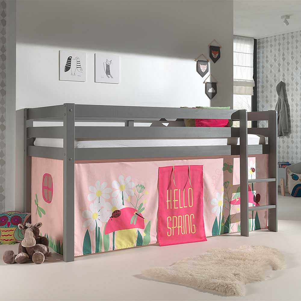 Mädchen Kinderzimmerbett in Grau und Rosa Leiter und Vorhang