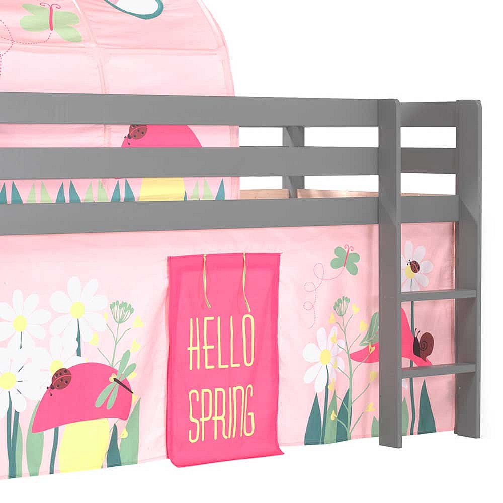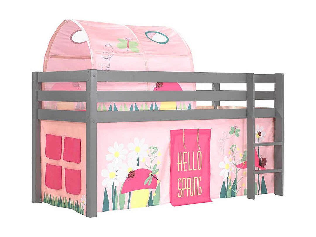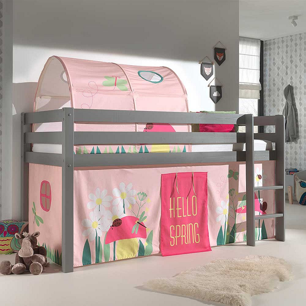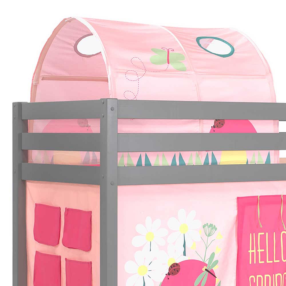 Mädchen Spielhochbett in Grau und Rosa Blumen Motiv
