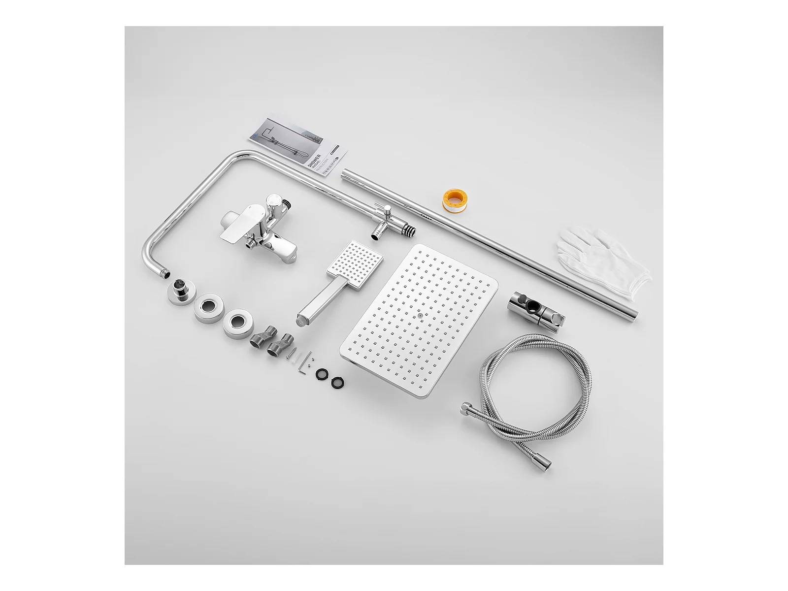 Mechanische Duschsäule, verchromte Duschsäule, höhenverstellbar 90–1240 mm für Badezimmer, Duschmischer mit Handbrause/Duschkopf