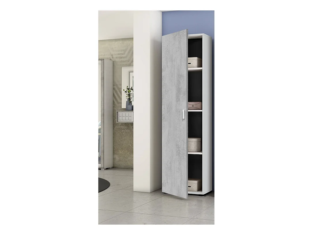 Mehrzweck-Kabinett Dmana, Beistellschrank mit 1 Tür und 3 Einlegeböden, Moderne Garderobe, Hoher Säulenschrank, 41x37h182 cm, Zement und Weiß