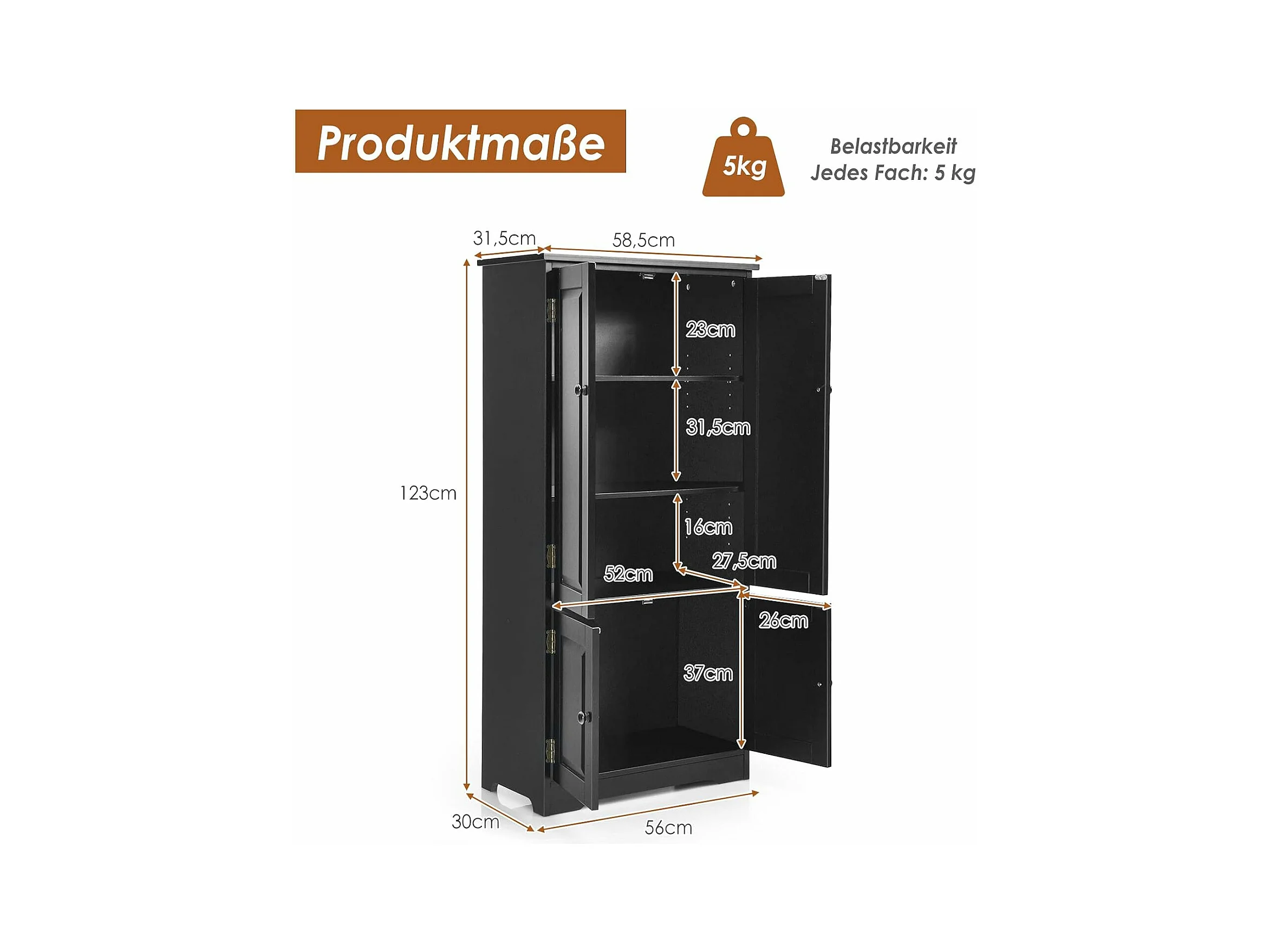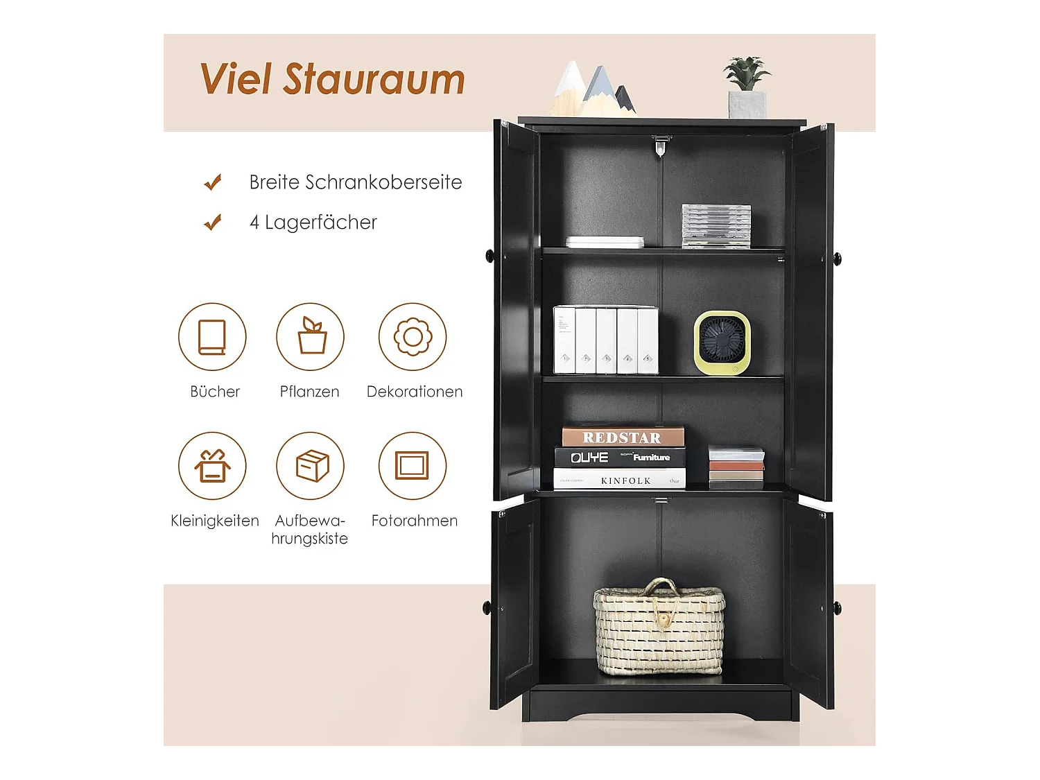 Mehrzweckschrank Vintage mit verstellbarem Regal Badschrank Flurschrank Garderobenschränke Kommode für Küche Wohn- & Schlafzimmer Schwarz VL32221