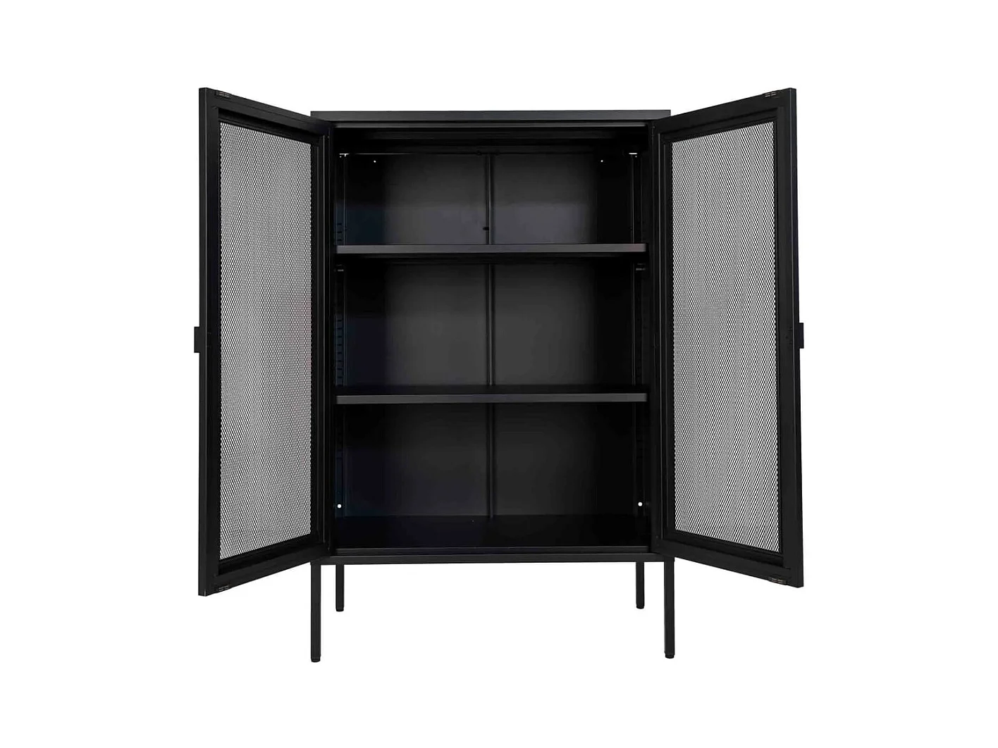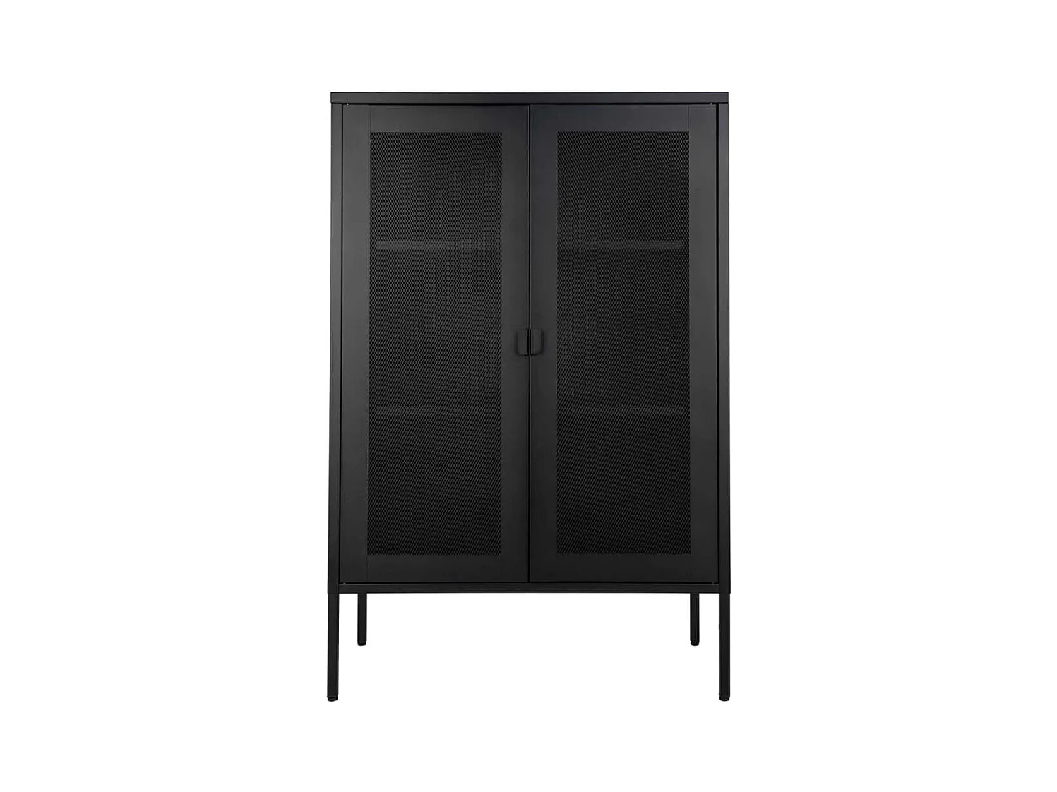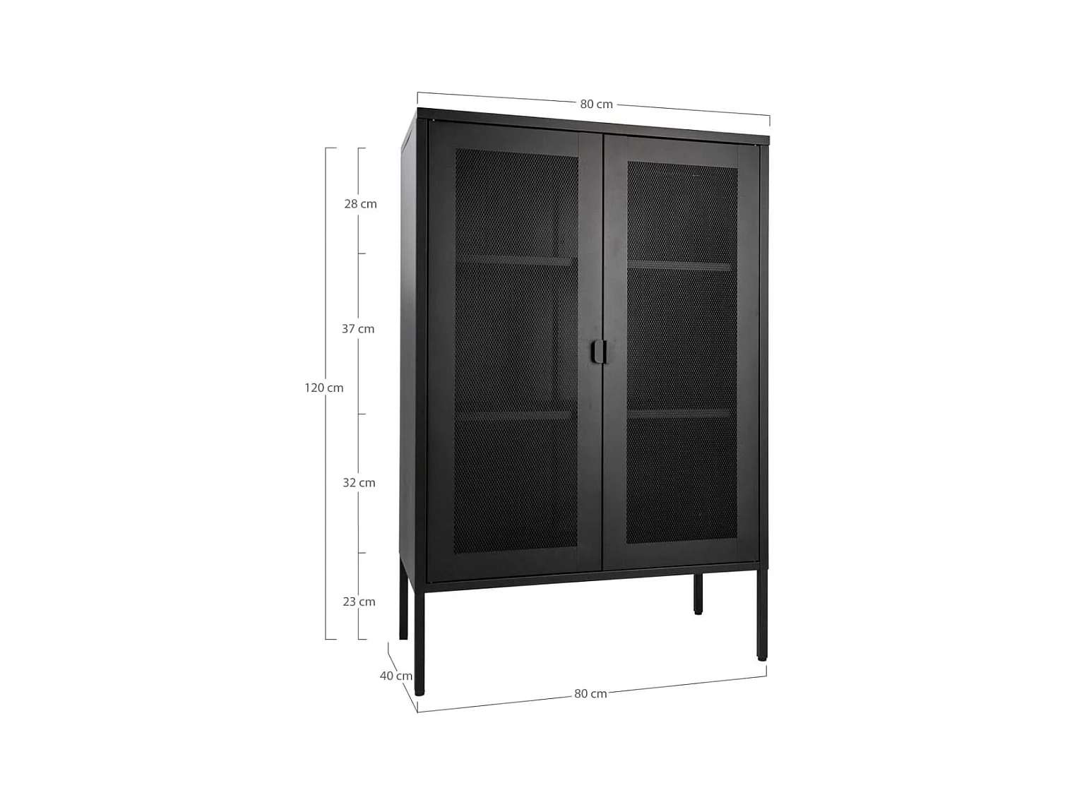 Melbourne Vitrinenschrank mit Drahtgittertüren, schwarz.
