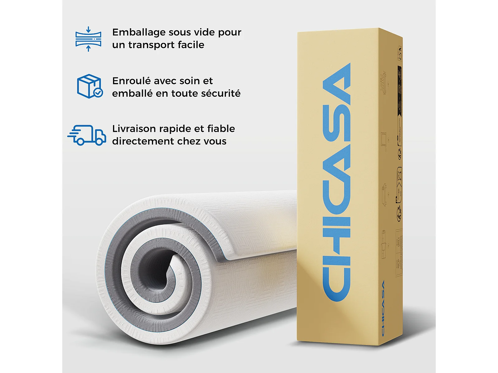 Memory-Schaum-Matratze 160 x 200 cm, Kaltschaum-Matratze mit 7 Zonen (h3h4), 21 cm hoch, mit waschbarem Bezug.