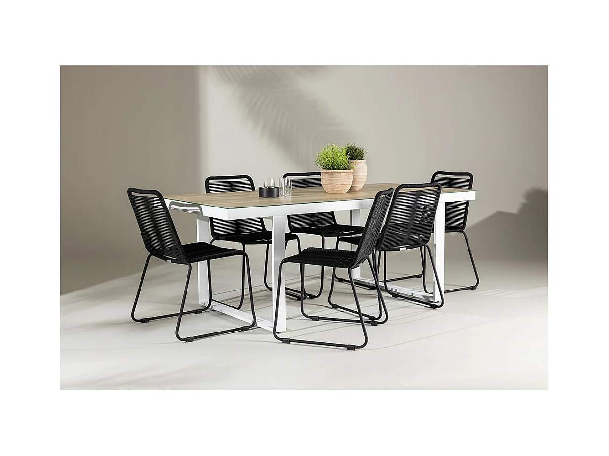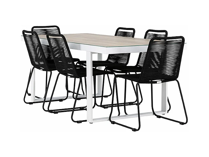 MerloLindos Gartenset 1 Esstisch, 6 Stühle weiß.