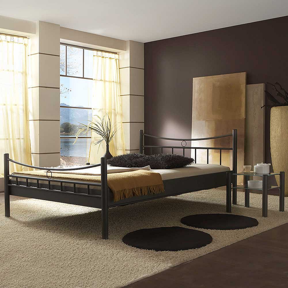 Metall Doppelbett mit Nahchttischen Eisen Schwarz (dreiteilig)