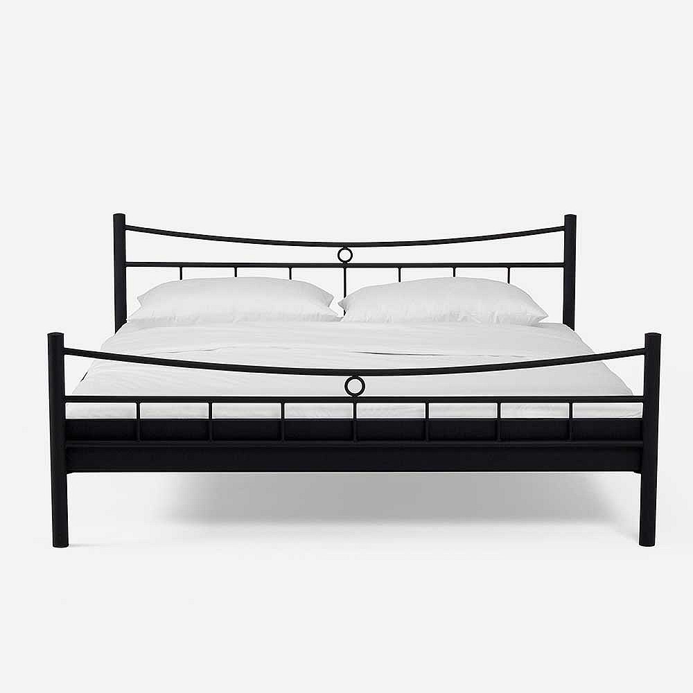 Metall Doppelbett mit Nahchttischen Eisen Schwarz (dreiteilig)