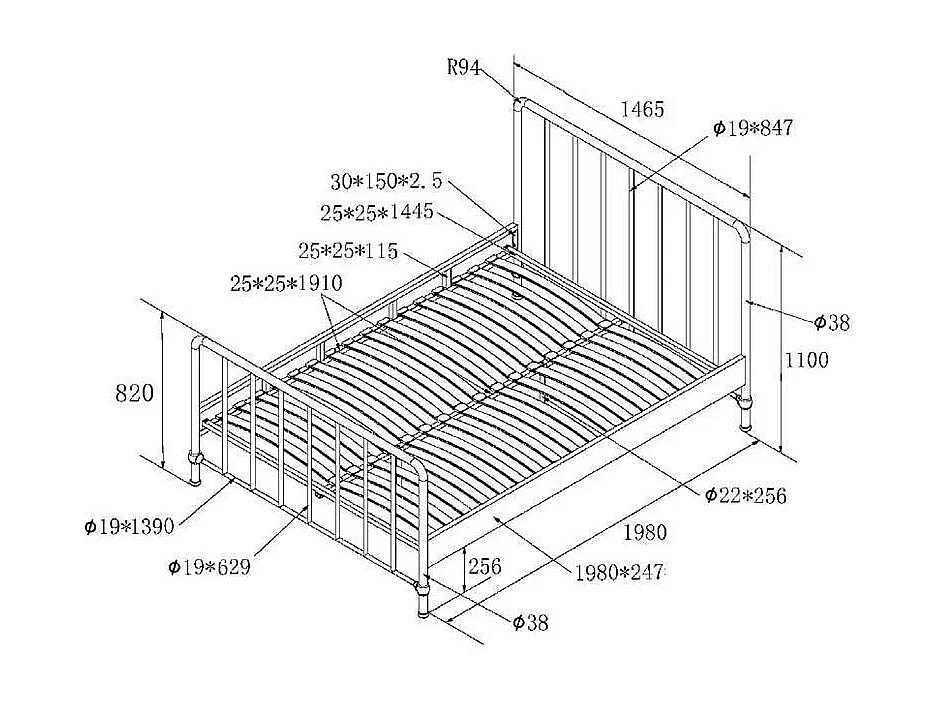Metall Gitterbett in Schwarz matt 110 cm Kopfteil