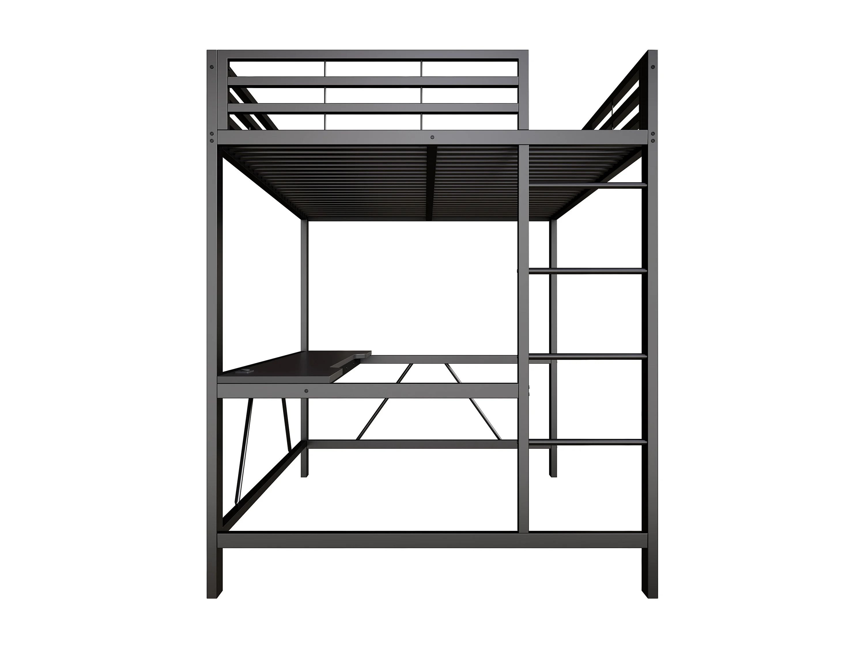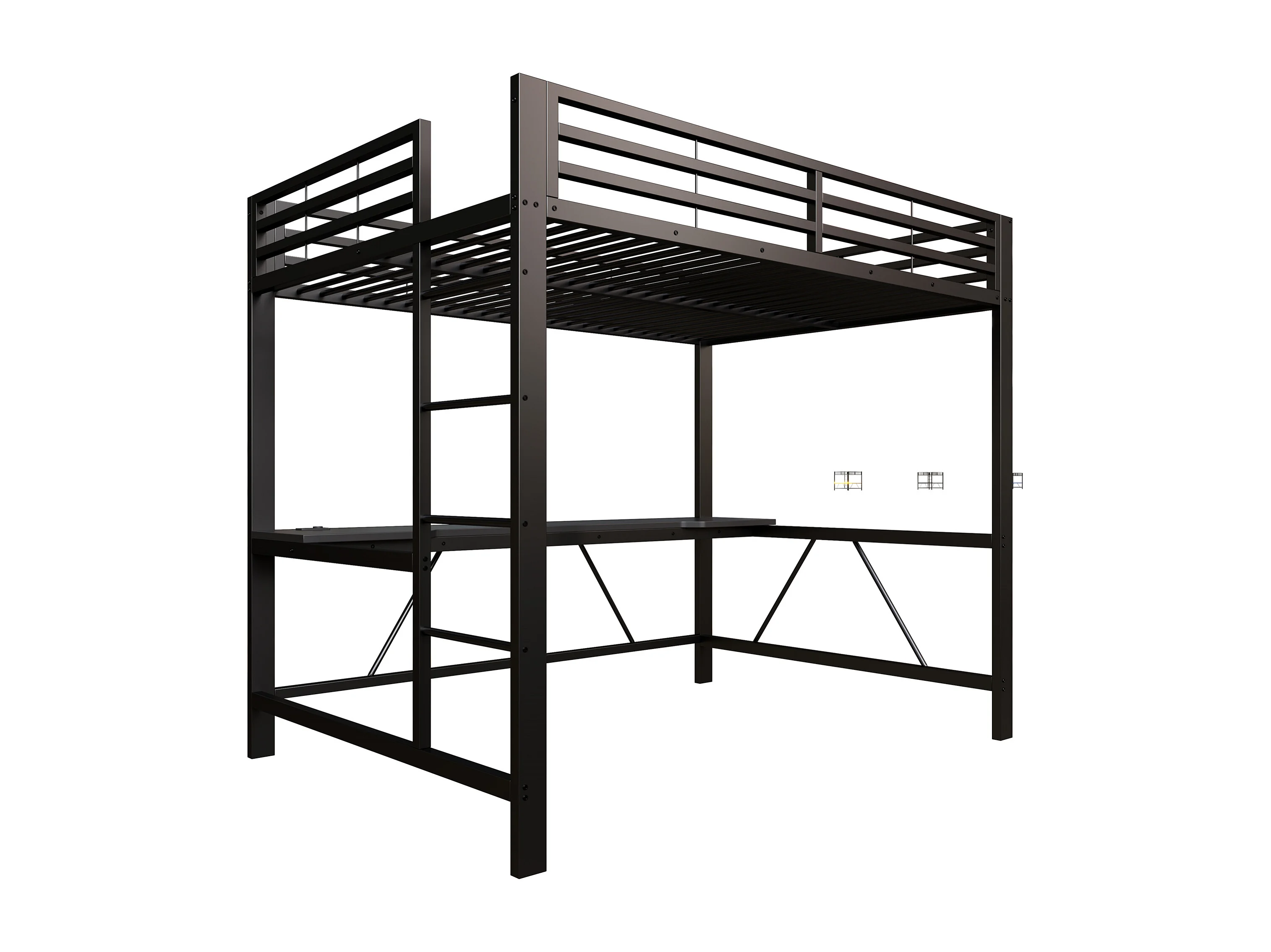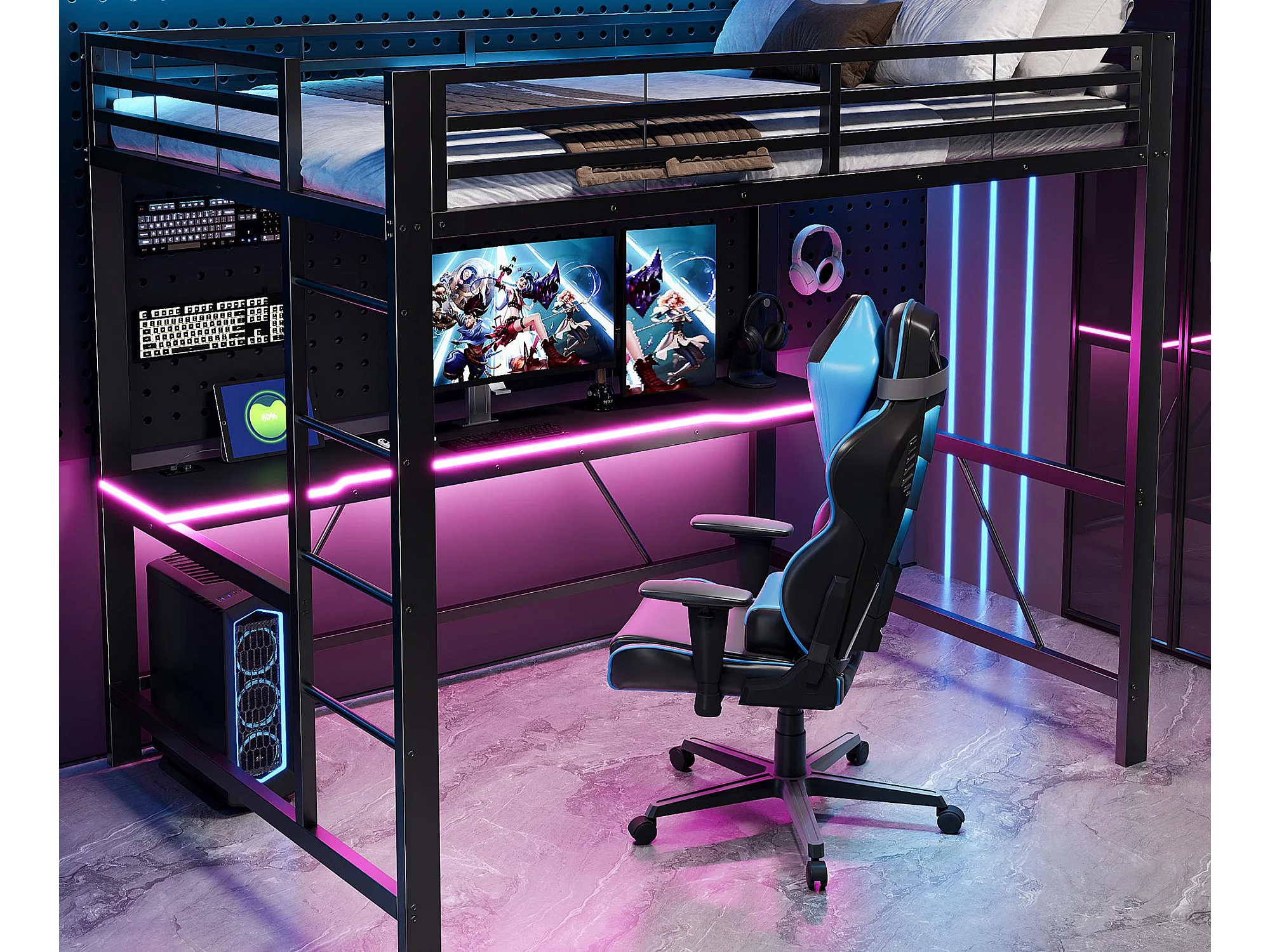 Metall-Hochbett 140x200cm - mit Schreibtisch - mit LED-Beleuchtung und USB-Ladeanschluss - Schwarz​ (ohne Matratze)
