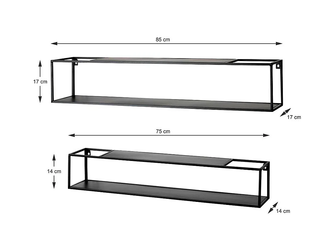 Metall Wandregale in Schwarz Industry und Loft Stil (zweiteilig)
