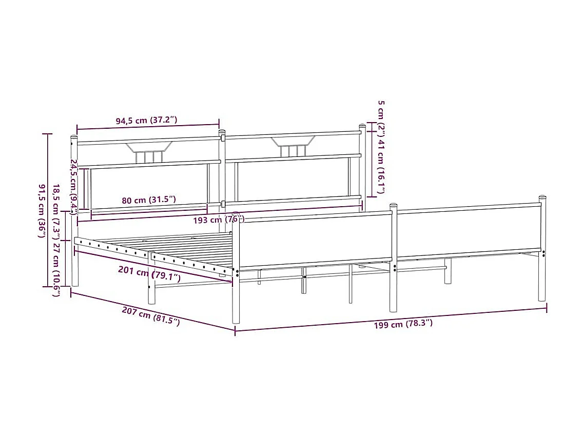 Metallbett ohne Matratze Braun Eichen-Optik 193x201 cm